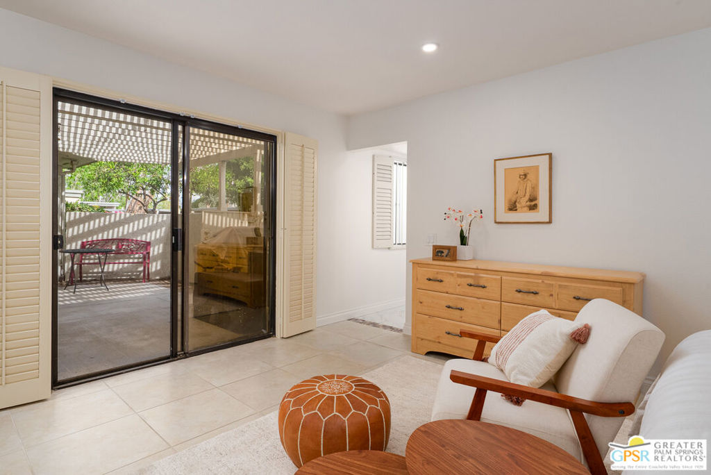 This thoughtfully updated and rarely available single level bungalow offers a bright, open living experience in one of Palm Springs’ most peaceful and well-maintained communities. This home has been fully renovated with upgraded windows, HVAC and remodeled kitchen and baths. The main living space is expansive and welcoming, anchored by clean tile floors, recessed lighting, and sliding glass doors that open directly to a private patio overlooking lush, landscaped grounds, perfect for indoor/outdoor living. The layout flows seamlessly from living to dining to kitchen, making the space ideal for entertaining or everyday comfort. The renovated kitchen is open, functional, and well-appointed, with ample cabinetry, counter space, natural light and easy connection to the dining area. The oversized primary suite is calm and comfortable, with plenty of room for a king-size bed plus seating. It offers a beautifully updated ensuite bathroom, and direct patio access. The guest suite is equally well finished and on the other side of the home for the perfect separation of spaces. Outdoor living is a standout feature, with two large private patios that feel tucked away and offer a quiet place to relax with tremendous mountain views and easy pool access. The unit enjoys a quiet interior location creating a sense of privacy while remaining close to amenities. The HOA covers water, sewer, trash, exterior maintenance, roofs, and landscaping, keeping ownership simple and predictable, with only gas and electricity billed separately. This is low maintenance desert living at its best, wrapped in a gated community that feels like a private oasis just minutes from everything Palm Springs has to offer.