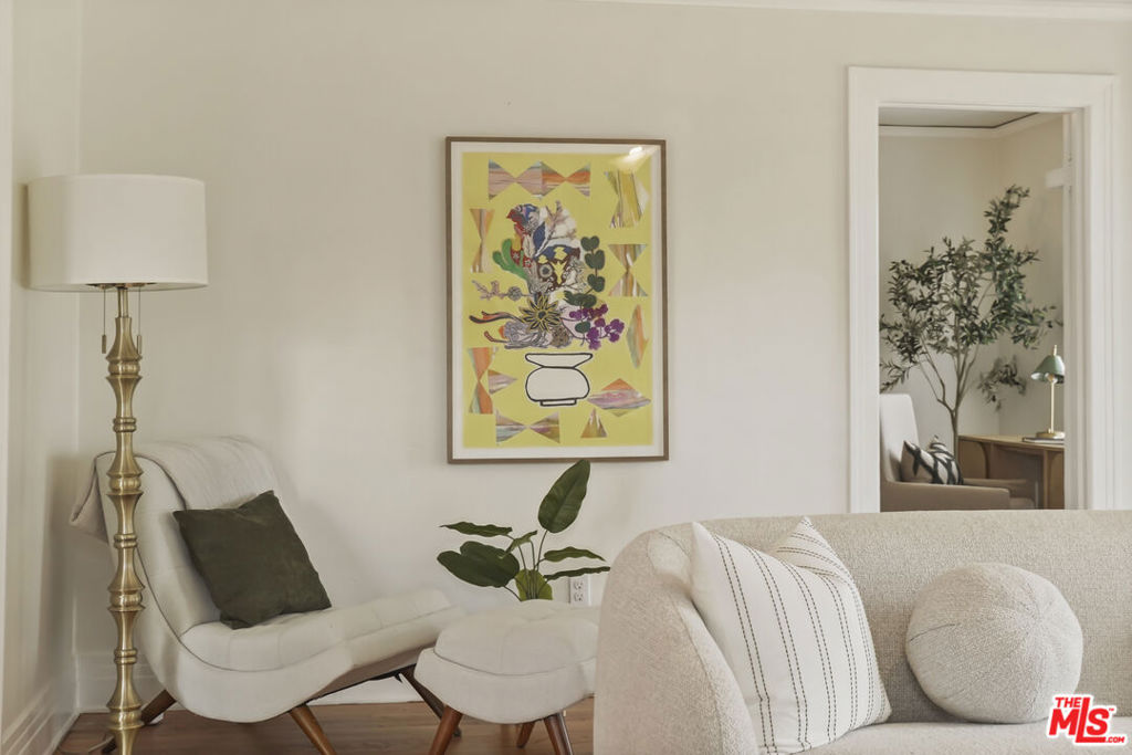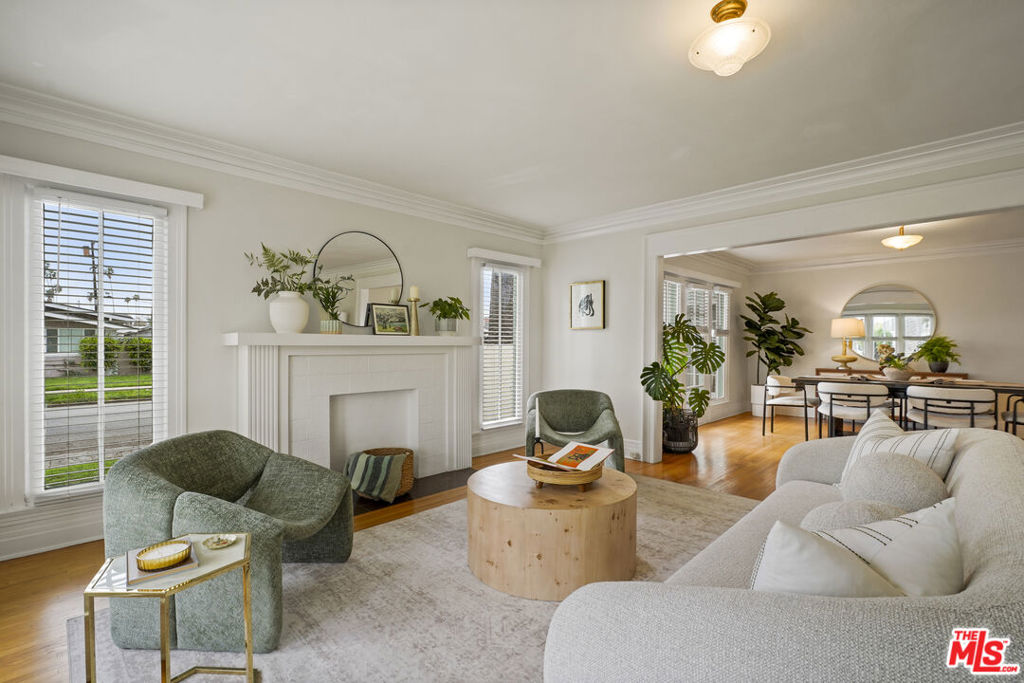 **Offers due Tuesday, February 24th at 3 pm** Set on a coveted corner lot framed with canary palms, this exquisitely preserved 1926 Spanish Craftsman in Leimert Park is filled with natural light throughout the day. The generously sized yet warm living and dining rooms offer an elegant flow for everyday living and entertaining. With abundant original windows and a south-facing orientation, the home is flooded with sunlight, while the west-facing exposure provides unforgettable golden hour glow each evening. Featuring 3 bedrooms and 1 bathroom, the home boasts refinished red oak floors, handcrafted moldings, windows, and original light fixtures in the living room, dining room, breakfast nook, and office, complemented by curated vintage lighting that honors its architectural heritage. The bathroom offers a sunken bath for unwinding, while every room in the home provides delightful views of lush greenery. The dining room opens to a private side balcony shared with the breakfast nook, perfect for morning coffee or evening gatherings. Outdoors, the arched backyard offers a storybook garden with plumeria, roses, and a Valencia orange tree, while ficus and podocarpus provide natural privacy. A newly built corner wall draped in growing vines enhances seclusion and creates a tranquil, romantic retreat. The detached garage has been transformed into a luminous art studio / multipurpose space with a half bathroom, skylight, and direct access to the back patio, seamlessly blending indoor and outdoor living. Thoughtfully updated with new roofs (house 2023, garage 2022) and fully upgraded electrical and copper plumbing (2018), this soulful residence blends romance, craftsmanship, and modern peace of mind, ideally located in a special pocket of Los Angeles with welcoming neighbors and a vibrant community close to amazing local businesses in Leimert Park Plaza, West Adams, and offers great accessibility to Downtown, USC / Exposition Park, Culver City, LAX, and the beaches and marina of the westside.