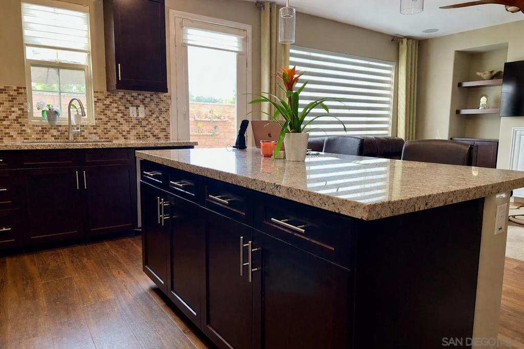 Welcome to resort-style living in a private gated community in Vista. This impeccably maintained 3-bedroom, 2.5-bath home offers 1,757 spacious square feet of thoughtfully designed living space filled with natural light. From the moment you enter through the secure garage access, you’ll feel the pride of ownership and elevated finishes throughout. The open-concept kitchen and living area were designed for connection and entertaining, featuring a gourmet island with bar seating, designer lighting and fixtures..see below …surround sound system, and beautiful natural hardwood flooring. The layout flows effortlessly, making it perfect for gatherings or relaxed evenings at home. Upstairs, enjoy a dedicated relaxation space ideal for a reading nook, office, or quiet retreat. Designer paint selections add warmth and character throughout. Step outside to your private oasis backyard complete with an outdoor firepit and serene setting perfect for evening unwinding. Within the community, enjoy tranquil park seating areas, a calming fountain, commercial BBQ stations, an epic playground, pool lounge, spa, and clubhouse with full kitchen…all designed to create a lifestyle, not just a home. Located near Camp Pendleton, this military-family-friendly community offers both comfort and convenience. Beautifully cared for and maintained. Move-in ready…this is the one you’ve been waiting for.