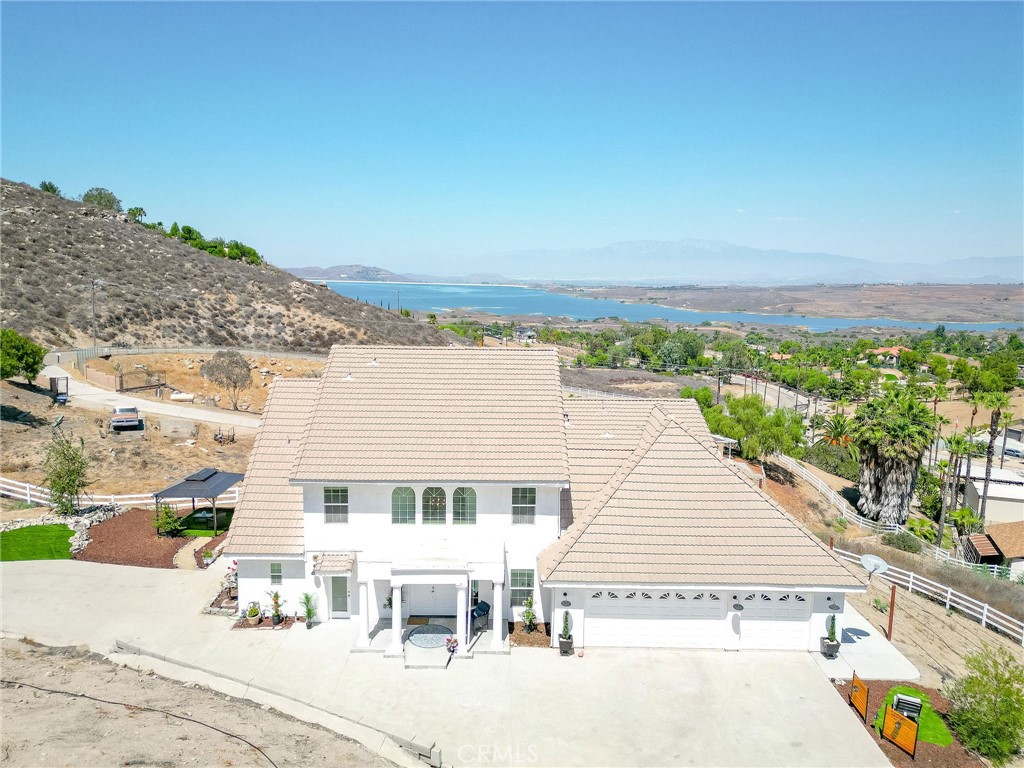 Welcome to Lake Mathews Estate. Picturesque home of timeless beauty, elegance, and tranquility, with spectacular views of the Lake, mountains, and city lights. Leave the world behind, enter your Private Gate, and drive down your tree-lined driveway. Your home offers endless possibilities with 6 bedrooms and 3.5 bathrooms, accommodating multigenerational families gathering and entertaining spaces, while enjoying spectacular views. Also, the 2.5 acres of the property has a flat pad approximately 250’x50′ overlooking the views A home of high-quality design and architectural details, such as high-end flooring and crown moulding. quality cabinetry, quartz countertops. The careful layout showcases the gorgeous views throughout, surrounded by windows that illuminate each room with natural light. You are greeted by an elegant porch that opens to a grand entrance, soaring ceiling with celestial windows, and a striking winding staircase. Near the entrance is a conveniently located Office/Flex/bedroom offering its own private outdoor entry. Adjacent to the grand entry is a separate cozy family room. Large open floor plan with cathedral ceilings consisting of your Living, dining, and kitchen, with wrap-around windows. The designer kitchen is thoughtfully laid out. Two pantries, one being a large walk-in, an extra-large island with ample storage, seating, and quartz countertops. Quality cabinetry offers ample storage and a custom hood over the stove with a pot filler. There is ample counter space, a farm sink, a coffee bar, and a separate wine bar with a wine chiller. The kitchen opens to a massive dining room, perfect for your family and those special occasions and holidays. Room for a breakfast nook and seating area. Expand your dining and gathering to the Lanai, with seating, dining, and a private bar. The Living room has a warm fireplace. The luxurious primary suite is on the first floor. A retreat to wake up to the exquisite views. Large spa-like Jacuzzi tub, custom walk-in closet, and private outdoor patio. The upper level consists of a junior on suite, a bed/flex room, and two other bedrooms, each with its own personal sink and storage, sharing a spacious bath. A special feature includes a convenient upstairs second laundry area! The home also included a first-floor indoor laundry and a spacious three-car garage. The outdoors has a park-like gazebo area perfect for enjoying the top-of-the-world views!