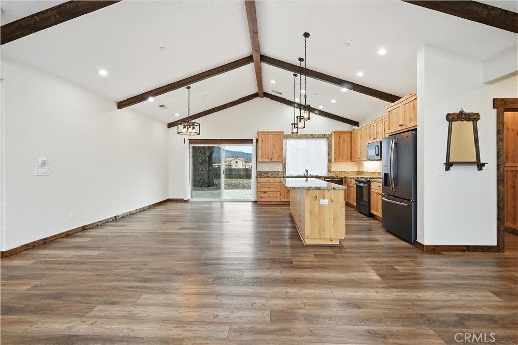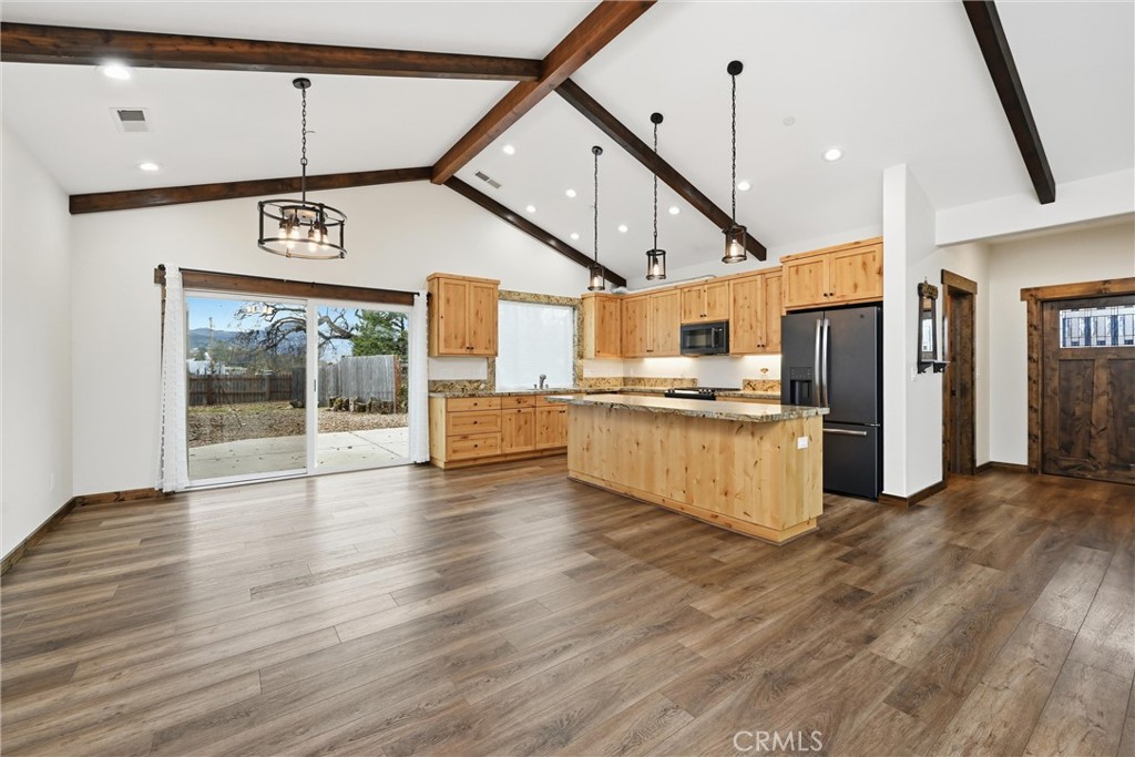 PRIVATE OASIS IN MIDDLETOWN -The home features an open, sweeping floor plan with vaulted ceilings in the main living area, creating a bright and spacious feel. Enjoy cozy evenings by the propane fireplace. The upgraded kitchen boasts granite countertops, a large center island, and ample cabinetry—perfect for both everyday living and entertaining This home offers 3 bedrooms and 2 bathrooms. The primary suite includes a walk-in closet and a spacious primary bathroom with a walk-in tiled shower, dual vanity, and distinctive copper sinks. Both bathrooms feature copper sinks for a unique, high-end touch. The oversized laundry room provides excellent storage and convenience, with washer and dryer included. Step outside to a fully fenced yard with 6-foot fencing for maximum privacy. The beautifully landscaped property includes 10 fruit-bearing trees, creating a peaceful and productive outdoor space. Additional features include a 2-car detached garage and a wooden Tuff Shed, ideal for gardening tools and storage. All of this is within walking distance to town, schools, shopping, and dining—offering the perfect blend of privacy and convenience.