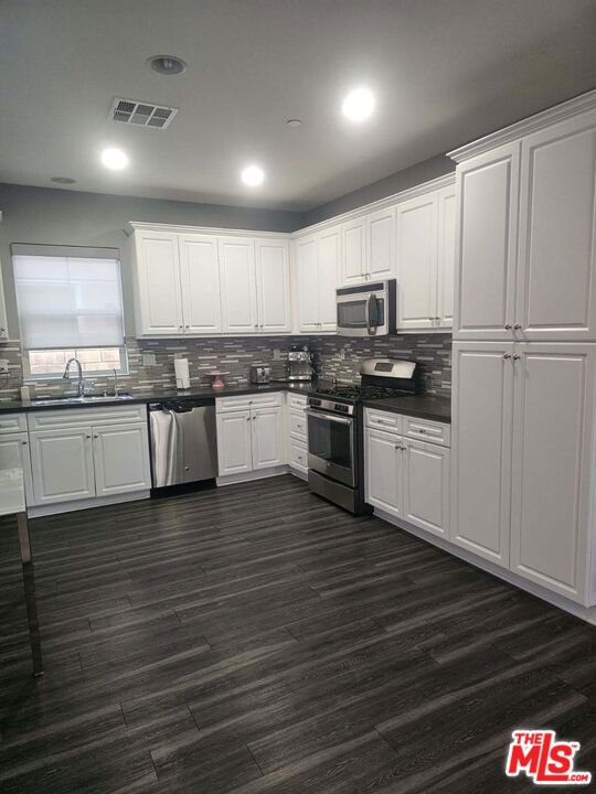 This beautiful Villa Metro 2 bedroom 2 and 1/5 bath detached home is in the very desirable area of Santa Clarita. It features an open-floor plan, a bright and airy loft that can be used for an office, den, or extra room. This 2-story home has custom paint, stainless steel appliances, laminate and carpet throughout. The laundry area is conveniently located upstairs. The master bedroom features custom paint and a large walk-in closet. The second bedroom has a Juilet balcony and private bathroom attached. Villa Metro is beautifully landscapped with picturesque courtyards. The community features a club house for entertaining and family gatherings. There is a resort-style swimming pool, a spa, fire pit, barbecue area, tot lot, pic nic area, scenic bike, running and walking trail. Shopping is conveniently located nearby. This sought after desirable community is a must see and have!
