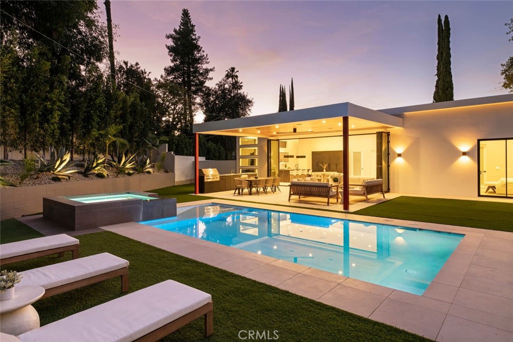 A rare opportunity to lease a fully reimagined single-story home on a flat lot in Woodland Hills! This stunning 3-bedroom, 3-bathroom residence offers 2500 square feet of meticulously redesigned living space, rebuilt from the ground up to deliver modern luxury at every turn. Soaring 13-foot ceilings throughout the home create an airy, expansive atmosphere throughout, while the seamless indoor-outdoor design blurs the line between interior comfort and alfresco living. The custom kitchen features built-in appliances and flows effortlessly into the entertaining spaces, making it ideal for hosting. Smart home technology elevates the experience with whole-home Hue lighting (inside and out), built-in sound, and electric blinds—adjust the ambiance with the touch of a button. Each of the three custom bathrooms showcases thoughtful design and premium finishes. Outside, the nearly 16,000-square-foot lot provides rare space and privacy. Enjoy resort-style amenities including a pool, spa, and built-in BBQ—perfect for year-round outdoor entertaining. This prime Woodland Hills locale places you so close to the Valley’s new central hub of dining, shopping and entertainment that Warner Center has to offer, not to mention easy freeway access, less than 30 mins to Malibu and less than 1 mile from one of the Valley’s highly accredited elementary schools, Woodland Hills Charter Elementary. Home is new and no one has lived in it before. This home truly has it all and is a must see!