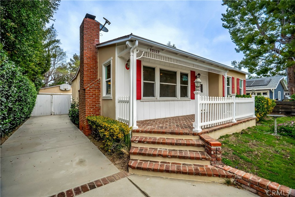 Prime South of Ventura Boulevard location on a picturesque, tree-lined Woodland Hills street, this inviting single-story home offers warmth and space. Ideally located just a few homes away from Woodland Hills Elementary Charter for Enriched Studies (buyer to verify enrollment). With 3 bedrooms plus a spacious bonus room across 1,671 sq ft, the thoughtful layout adapts beautifully to everyday living. Durable wood-style flooring and recessed lighting enhance the bright interior, while a relaxing brick fireplace anchors the welcoming living room. The cheerful kitchen features modern cabinetry, granite countertops, and a gas cooktop, flowing easily to the brick rear patio—perfect for morning coffee, weekend barbecues, or outdoor dining. One bedroom includes an en-suite bathroom with shower. Privately set at the rear of the home, a spacious bonus room features wood beam vaulted ceilings, its own fireplace, dual-sink vanity, jetted tub/shower combo, and a dedicated walk-in closet area—creating a true primary-style retreat, guest space, or private office. The flat grassy backyard provides space to play, garden, or simply unwind. A detached two-car garage and extended driveway offer ample tandem parking. Just moments from Ventura Boulevard’s shops and restaurants, The Village, Westfield Topanga, and convenient canyon and 101 access, this South of the Boulevard home blends comfort, location, and long-term potential.
