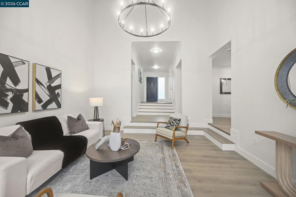 Experience elevated living in this beautifully updated Virginia Hills home on the Pleasant Hill–Lafayette border. Scenic hillside views greet you the moment you enter. Soaring vaulted ceilings and light oak wood-look flooring enhance the inviting living room, which opens to expansive decks showcasing the serene backdrop. The spacious dining room features a garden-style window and statement chandelier, perfect for memorable gatherings. The updated kitchen shines with crisp white cabinetry, quartz counters, breakfast bar seating, and new GE gas range and dishwasher, flowing seamlessly into the family room with a classic brick fireplace and easy deck access for ideal indoor-outdoor living. Outside, multiple decks and patios, a grassy lawn framed by pine and redwood trees, and space for gardening or play create a private retreat. The primary suite offers dual vanities and two closets, while three additional bedrooms share a remodeled bath. Indoor laundry and a garage with epoxy floors and loft storage complete the home. Close to shopping, schools, trails, and dining. A must see.