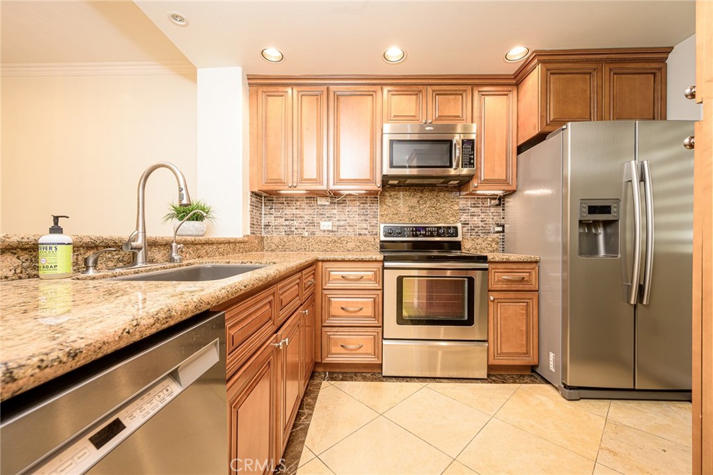 Resort style living at The Metropolitan. HIGHLY UPGRADED very large one bedroom plus den that can be used as an office or second bedroom. Beautiful newer carpeting in living room. Newer recessed lighting throughout and a marble cased gas fireplace . Office/den/second bedroom features recessed lighting with dimmer, beautiful stone flooring, and custom window shades. Kitchen features newer granite countertops, beautiful custom cabinetry throughout, reconfigured pantry and washer/dryer room, stainless steel electric oven and range, dishwasher, washer, dryer and refrigerator all included in sale. 9-foot ceilings throughout. Bathroom features dual vanity with stone countertops and custom cabinets with lots of storage, private toilet & walk in shower with custom glass doors adjacent to large stone cased soaking bathtub. Bedroom has spacious walk-in closet, recessed lighting, custom draperies and newer carpeting. Patio is very large with lush tropical landscape views. This unit has 2 side by side parking spaces #190 & 191 which is rare for this model. Brand new HVAC system. Close to South Coast Plaza & Fashion Island/ Newport Beach, all the best Orange County has to offer is at your doorstep. Within a few minutes of JW Airport & 3 major freeways this ideal location is for the most cosmopolitan of residents. Features pool, spa, gym & guarded gate. Water, hot water trash, and gas are all included in HOA dues. Great opportunity here! Hurry!