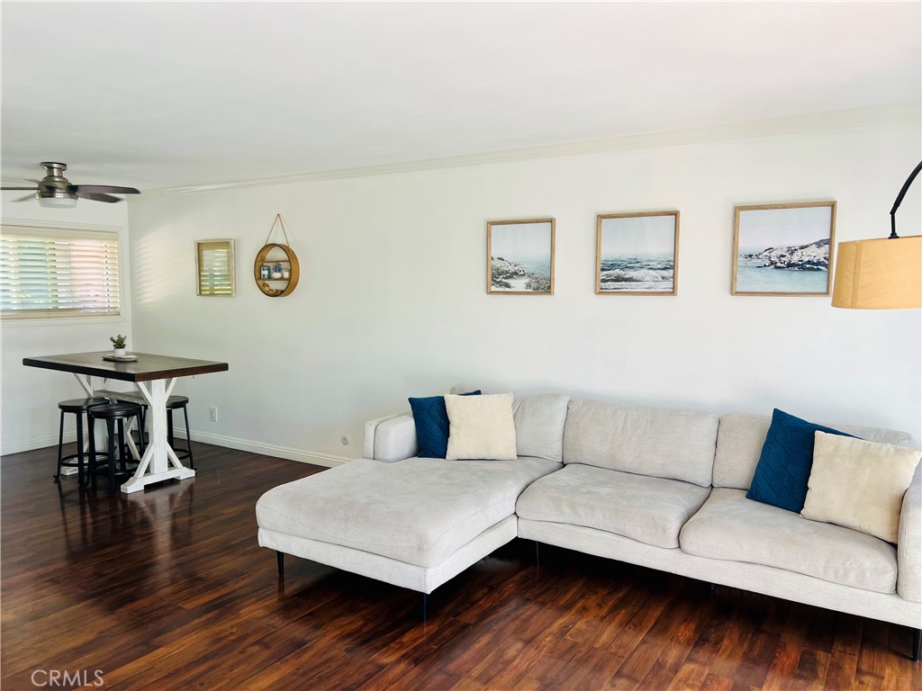 Move right into this light and bright large one bedroom condo located in beautiful South Shores. Amenities include Granite countertops in kitchen and bathrooms, stainless steel appliances, Hardwood floors, Milgard dual pane windows, custom closet with mirrored doors, smooth finished ceilings with moldings throughout, custom blinds, new electrical panel, and completely remodeled balcony with new railing. Gated complex with a pool and BBQ area that has amazing ocean / Catalina / golf course views. Unit comes with 1 carport parking space and storage. Onsite laundry area close to unit.