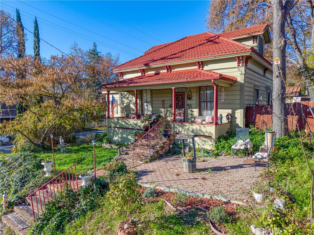If you’re looking for a home with a blend of character and modern amenities, this one is for you! Constructed over 100 years ago of clear heart Redwood, this home was built to last. Covered porch leads you into a living room with 13 ft soaring ceilings, open living space and charm galore! Metal roofing & engineered hardwood and vinyl throughout offer both style and durability. 480 sq ft detached extra deep garage also has high ceilings and plenty of room for parking, boat storage and a workshop. Solid perimeter foundation is bolted to a reinforced cripple wall. Main bedroom is on the first level with private bathroom, ceiling fan, and impressively high ceilings. Second smaller room has a walk in closet and would be perfect for a nursery or office space! The spacious upstairs room is filled with natural light and arched high ceilings providing a comfortable and airy retreat. Indoor laundry room, pantry and monitor heat complete the package. A charming 3 seasons room has a wall of windows and arched ceilings with access to the back yard. Generous and private back yard area boasts a redwood deck and plenty of space to roam. Fire hydrant at street.