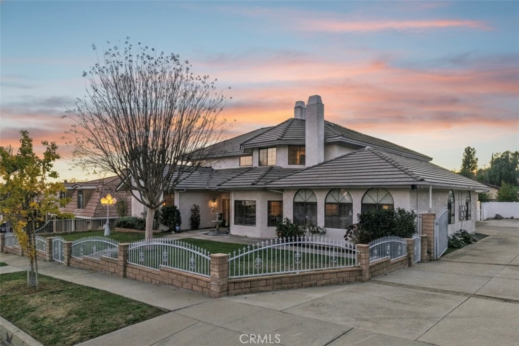 Welcome to your new home! Nestled at the foothills of prestigious San Antonio Heights, where Mt. Baldy’s snow-capped peaks create a stunning year-round backdrop—is a custom 4,451 square foot home with incredible curb appeal, timeless charm, and the backyard of your dreams. Walk through the front double doors to a sizeable foyer with soaring ceilings and a grand staircase that makes an unforgettable first impression. Natural light dances off the full mirrored wall in the formal dining room, complete with elegant French doors. Down the hallway you’ll find a bedroom with high ceilings and a ¾ bathroom, perfect as guest quarters or a home office. The large living room boasts an inviting fireplace and vaulted ceilings with plenty of room for family movie nights. Stylish recessed lighting has been added throughout key living areas, enhancing the home’s ambiance day and night. The informal dining room easily holds a table for 10 and sits just off the incredibly spacious kitchen—your home chef’s favorite room with its gas stove, endless cupboards, walk-in pantry, granite countertops, and breakfast bar. Just off the kitchen is an enormous bonus room that can hold a pool table on one end, with a ¾ bathroom and large office or 5th bedroom with wet bar on the other. With small modifications, it could serve as separate living quarters. Upstairs you’ll find two large bedrooms and a full bathroom with dual sinks for the kids. The exceptionally large primary suite features a fireplace, walk-in closet, dual sinks, glass shower, private toilet, and luxurious oval jetted tub. Each bedroom has French doors leading to a shared balcony with breathtaking mountain views. Recent upgrades provide peace of mind: a brand-new roof and new air conditioning units ensure lasting comfort through every season. The crowning jewel is the backyard. “Grey Haven” is an entertainer’s paradise featuring grey pavers, two manicured lawns, three organic garden beds, a large pergola, and an outdoor bar complete with Twin Eagles Grill and Perlick refrigerator. A stunning fountain sets the perfect ambiance, and the 13-foot swim spa seats nine. Custom landscape lighting transforms evenings into magic. This home also features a 4-car garage, leased solar, RV parking, and ¼ share water stock.