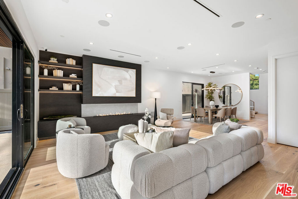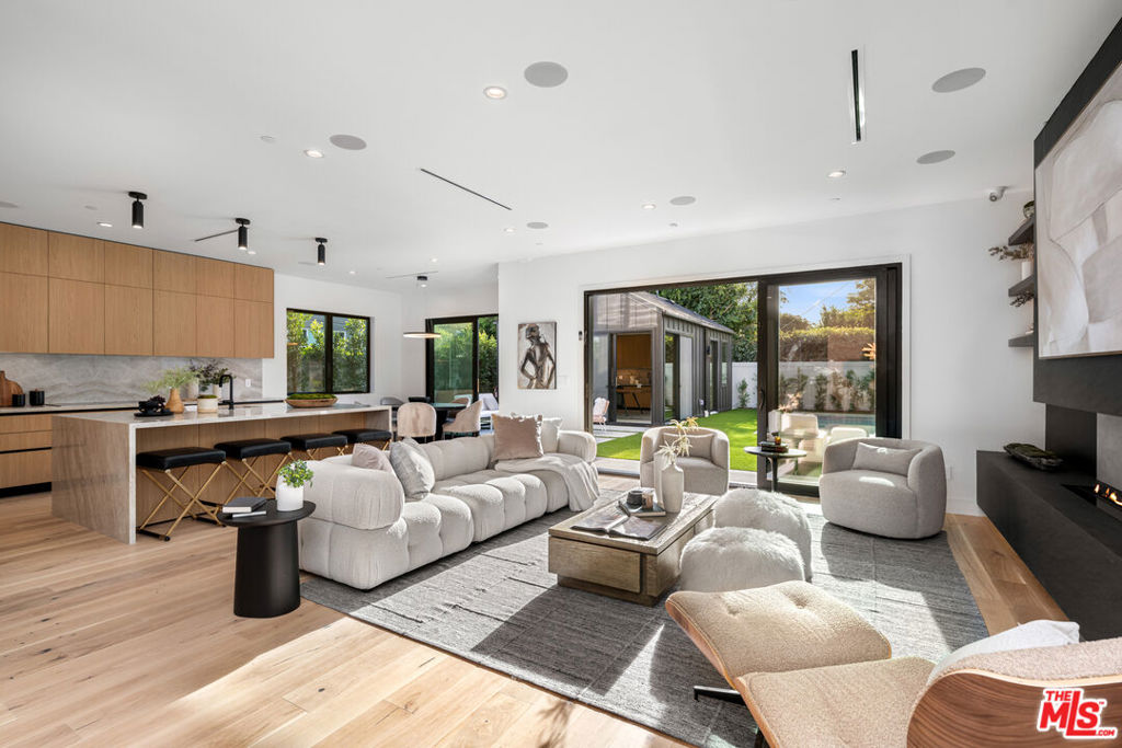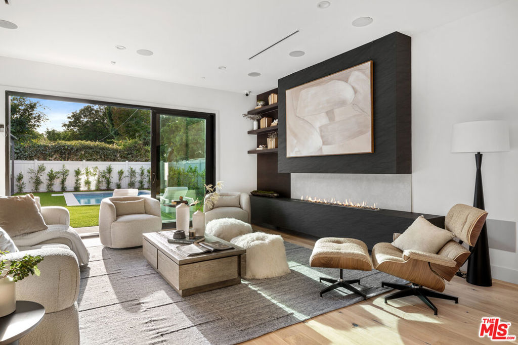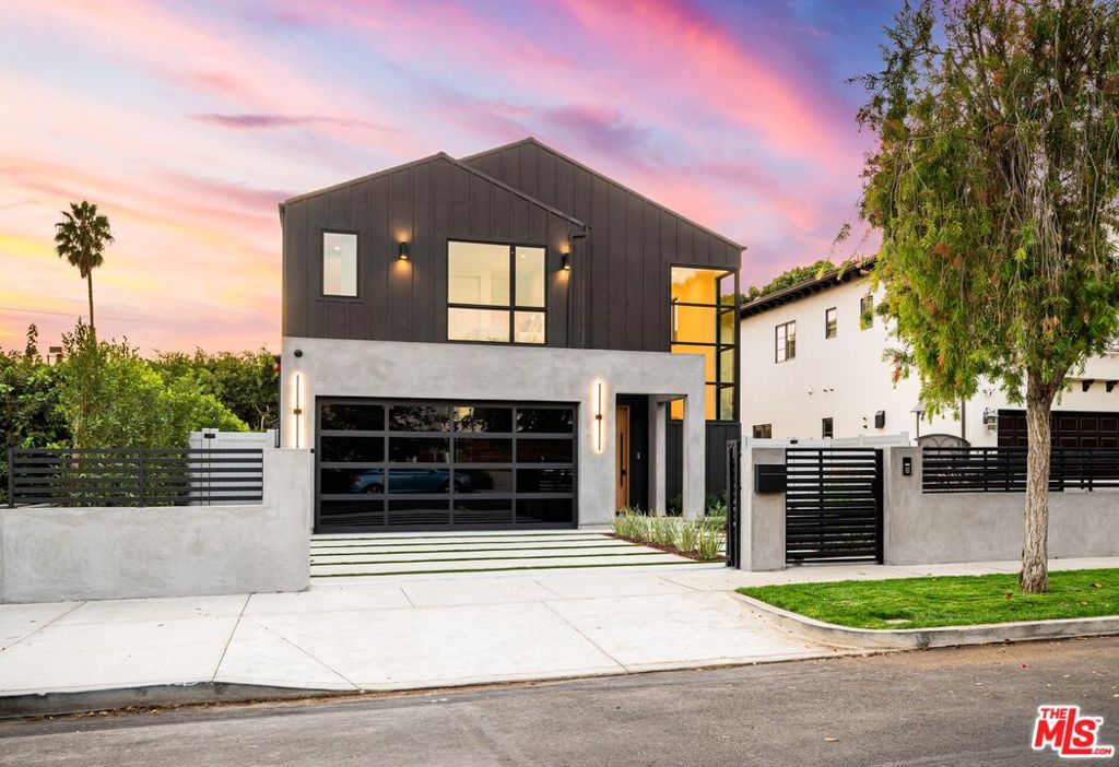 Experience luxury and modern living in this newly built custom-designed modern home on a beautiful tree-lined street. This one-of-a-kind residence blends contemporary design with timeless elegance, featuring a spacious main house with 4 bedrooms, an office/bonus room and 4.5 bathrooms. Plus a separate 1 bedroom, 1 bathroom ADU – ideal for guests or a gym room. Step inside to an open-concept layout with soaring ceilings and abundant natural light. The open living area boasts a large cozy fireplace and a gourmet kitchen with high end Miele appliances, Taj Mahal quartzite counters, designer lighting, custom cabinetry, and a walk-in pantry. Also, two separate dining areas both extending to an outdoor space, perfect for gatherings. Additionally, the first floor includes a guest bedroom, stylish powder room, and a spacious two-car garage. Upstairs, you’ll find a light-filled office/bonus room, three additional bedrooms and a laundry room. Last but not least, the primary suite features custom panel walls, vaulted ceilings, a private balcony, a walk-in closet, and a spa-like en-suite bathroom. The backyard is a private oasis with a charming patio, lush greenery, and privacy hedges, with a pool and spa ready for entertaining. This home includes Control4 smart home technology throughout with integrated lighting, speakers, thermostats, a security system with cameras and a paid in full solar panel system. Located in a family-friendly neighborhood near upscale shopping, dining, and top-rated schools, this home offers a blend of luxury, comfort, and convenience. Don’t miss the opportunity to call this remarkable home your own.