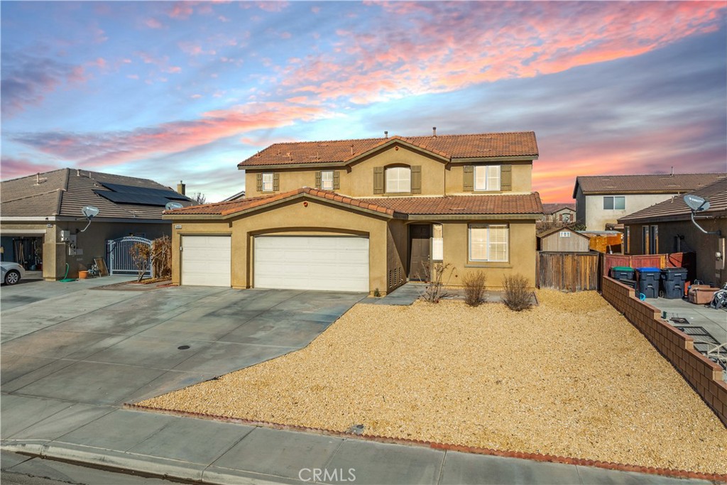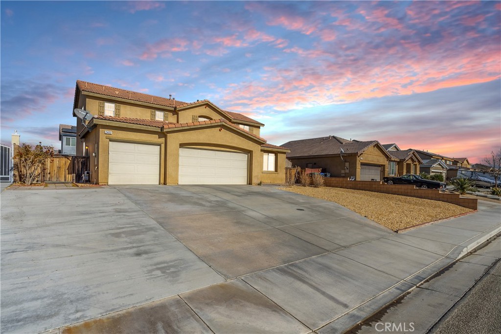 **Move-In Ready 4-Bedroom, 3-Bathroom Home with 3-Car Garage in the Heart of Rosamond** This beautifully maintained modern home is being offered for the first time since it was purchased new in 2009! Featuring 2,637 square feet of spacious living, this property is ideally located near the freeway, shops, and schools. The home includes a whole-home water softener system, dual AC units for efficient climate control, and elegant Laminate flooring throughout downstairs. The bright and airy living and family rooms are flooded with natural light, while the modern kitchen boasts granite countertops, a pantry, and ample storage. A dedicated downstairs laundry room adds extra convenience to daily living. Upstairs, you’ll find three generously sized bedrooms designed for comfort and functionality, along with a full bathroom offering ample counter space. The spacious master suite provides room for any furniture arrangement and includes a large walk-in closet and an en-suite bath with a separate tub and shower. The exterior is just as impressive, with desert landscaping in the front yard for easy maintenance and a fully enclosed backyard with block fencing for privacy. A large covered patio offers the perfect space for relaxing or entertaining, providing shade from the sun and shelter from the rain. This is the only home available in this desirable neighborhood—don’t miss the opportunity to make it yours!