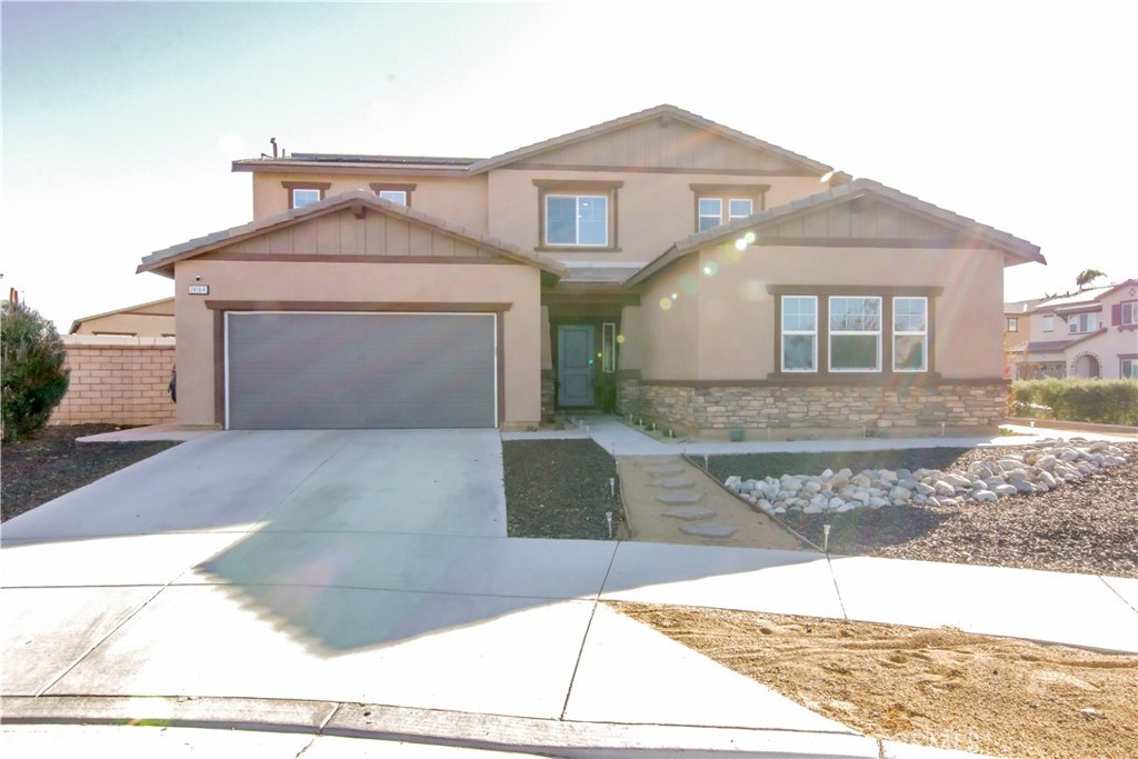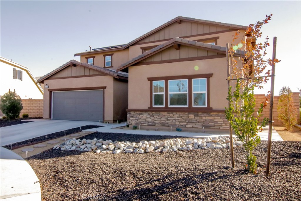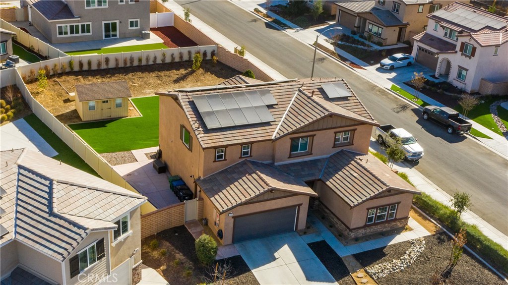 Welcome to your dream home, featuring solar energy and dual EV charging for modern convenience. This stunning 5-bedroom, 4-bathroom, 2,923 sq. ft. home is located in the prestigious Audie Murphy Ranch in Menifee, on a peaceful cul-de-sac, with no neighbors to the left and a short walk to the park. From the moment you step inside, you’ll be captivated by the open-concept layout and custom upgrades. The chef’s kitchen boasts upgraded countertops, pendant lighting, a full backsplash, stainless steel appliances, abundant storage, and a large island with space for seating. A convenient bedroom and full bath are on the main floor, along with a private Next Gen suite featuring its own entrance, living area, mini kitchen featuring microwave sink, mini fridge and washer/dryer hookups. Upstairs, enjoy two spacious bedrooms, a full bath, and a large loft — perfect for entertaining. The master suite offers a walk-in closet, dual sinks, and a luxurious stand-up shower. Additional upgrades include a Quiet Cool whole-house fan, recessed lighting, water softener, tankless water heater, and a drip system in the front and back yards. The low-maintenance backyard features astroturf, a newer she-shed/work storage, and a peaceful atmosphere. This home is close to schools, shopping, dining, and entertainment, with easy access to the 15 & 215 freeways. Residents enjoy resort-style amenities, including a clubhouse, Olympic pool, sports park, skate park, tennis courts, and miles of trails. Welcome to your new home!