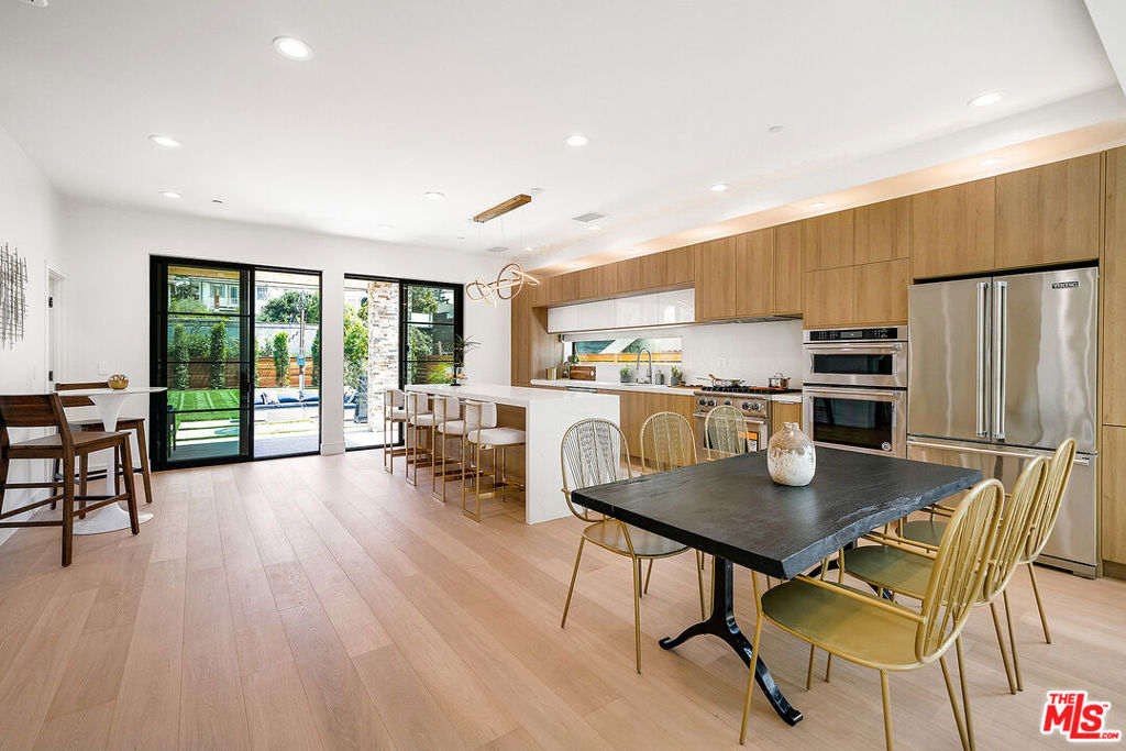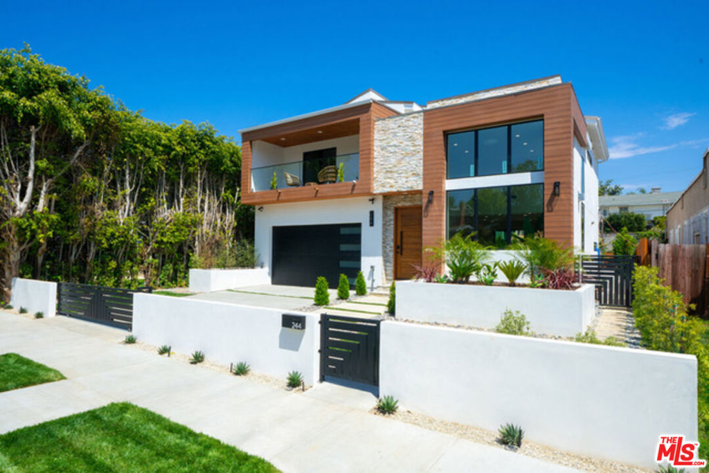Stunning 2021-built modern residence offering 4 bedrooms and 4.5 baths in a highly desirable Hancock Park adjacent location. Thoughtfully designed with an open floor plan, this home features soaring 16-foot ceilings in the living room, a sleek fireplace, and expansive windows that flood the space with natural light. Seamless indoor-outdoor California living is showcased with a covered deck leading to a private, spacious backyard lined with mature ficus trees. The chef’s kitchen is equipped with a striking waterfall island, walk-in pantry, and ample cabinetry, perfect for both everyday living and entertaining. All bedrooms are En-suite, including a convenient downstairs suite ideal for guests or a home office. Upstairs, each bedroom enjoys its own balcony, while the luxurious primary suite features dual walk-in closets, a spa-inspired Jack-and-Jill bathroom, and a standalone soaking tub, plus a private balcony overlooking the backyard. Additional highlights include an upstairs laundry room, separate powder room, and a full security camera system. A rare opportunity to own a newer construction home that perfectly blends modern design, functionality, and prime location