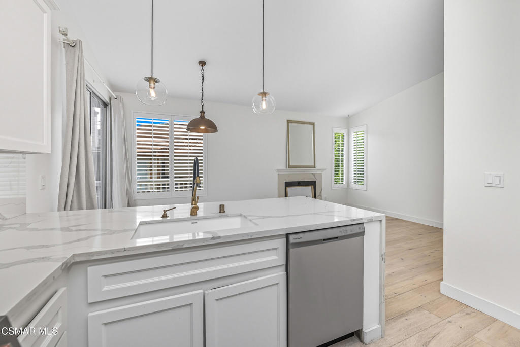 Welcome to this stylishly updated 2-bedroom, 1-bath condo in the heart of Thousand Oaks! Just minutes from top restaurants, shops, parks, award-winning schools, and the Civic Arts Plaza, this home offers unbeatable convenience. Inside, you’ll find vaulted ceilings, abundant natural light, and a spacious open floor plan. Recent upgrades include hardwood flooring in the main living area, fresh paint, hardwood shutters, and newer stainless steel appliances. Wood fireplace and two sliding doors to access a private balcony. Both bedrooms are generously sized, with mirrored closet doors and plenty of storage. Additional highlights include an updated bathroom, in-unit washer and dryer, and a newer HVAC system. Enjoy comfort, style, and convenience all in one–discover the charm of living on Pleasant Way!
