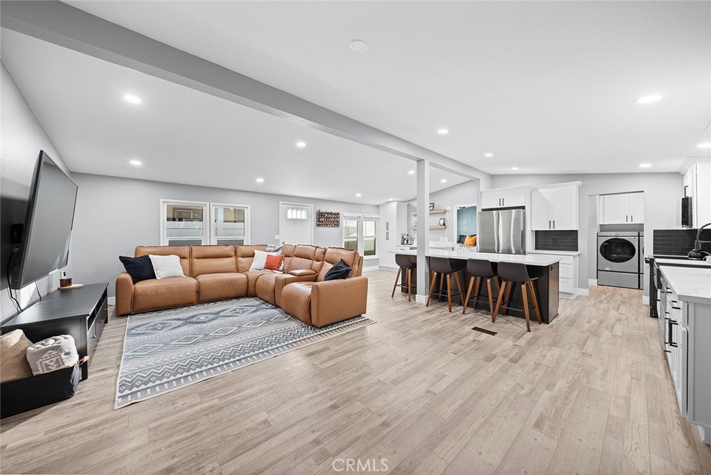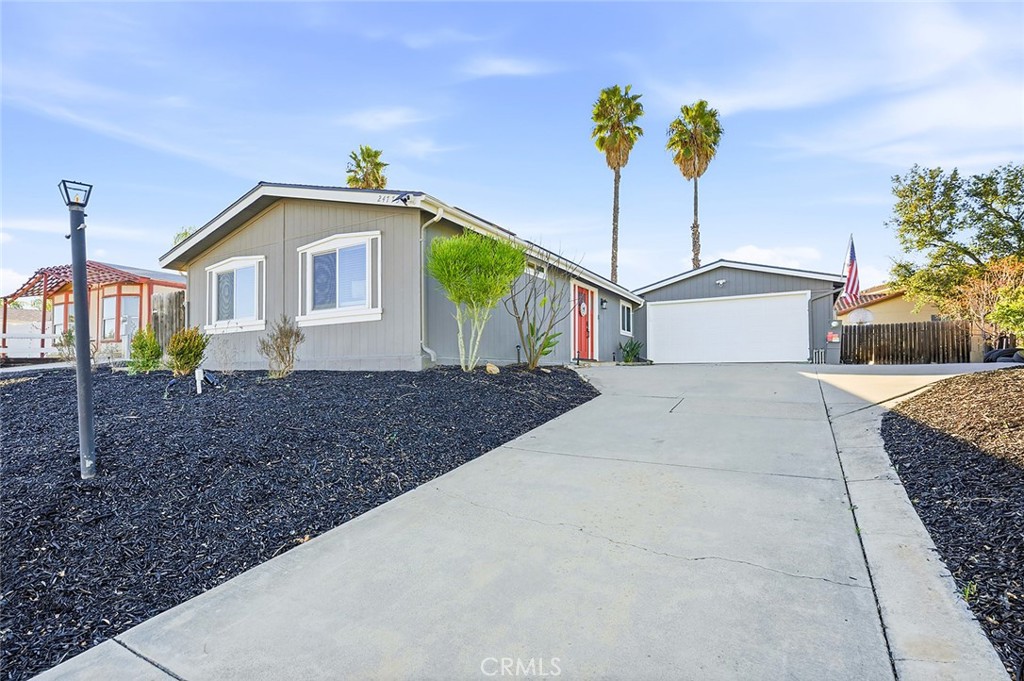 Welcome to this beautifully fully remodeled 3-bedroom, 2-bath home located in the heart of Wildomar, offering 1,344 sq ft of modern living on a spacious 7,841 sq ft lot with potential RV parking, with room to extend for longer trailers (verify HOA rules). This manufactured home on owned land is ideal for first-time buyers and has been thoughtfully upgraded throughout, featuring a new luxury kitchen ideal for chefs, fresh interior paint throughout, new flooring, new windows, a renovated primary bathroom, and a new HVAC system, along with a roof replaced just a few years ago and the $50k solar system will be fully paid off for the new buyer for added energy efficiency and long-term savings. The home also includes a bonus room behind the garage, perfect for storage or a home office, adding flexibility to the floor plan. Step outside to enjoy the backyard under the new Alumawood patio cover, ideal for relaxing or entertaining, while benefiting from extensive community amenities including 3 pools, 2 spas, fishing pond, baseball & soccer field, basketball court, two RV storage areas, and hiking trails! This move-in ready, turn-key home offers comfort, efficiency, and outstanding value in a great location.