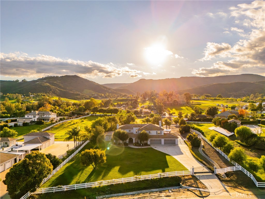 Located behind the gates of the prestigious Wynfield Estates, this exceptional residence offers a rare blend of refined luxury, privacy, and expansive ranch-style living. A private gated entrance, manicured landscaping, and striking curb appeal immediately reflect the pride of ownership throughout the estate. The thoughtfully designed home offers 6 bedrooms and 5.5 bathrooms, including a highly desirable downstairs junior suite and a separate downstairs ensuite with a full bathroom and built-ins, ideally suited for NextGen living with its own private entrance, along with a dedicated downstairs office. A custom double-door entry welcomes you into a light-filled, open floor plan that balances elegance with comfort. Formal living spaces include a private sitting room with a fireplace and a sophisticated dining room featuring a built-in bar and custom cabinetry, creating the perfect setting for entertaining. The expansive, fully remodeled kitchen serves as the heart of the home, offering a walk-in pantry, generous bar seating, and sweeping views from every window. The kitchen opens seamlessly to the spacious family room, highlighted by soaring ceilings and a statement fireplace. Upstairs, oversized bedrooms and well-appointed bathrooms create an ideal and functional layout. The primary suite is a true retreat, complete with its own fireplace, dual walk-in closets with custom built-ins, a luxurious soaking tub, and a separate walk-in shower. Designed for resort-style living, the outdoor spaces are truly exceptional. The flat, fully usable grounds feature a saltwater pool with spa grotto and rock slide, expansive views, an oversized built-in firepit with seating, and a pool cabana with its own fireplace. Entertaining is effortless with a full outdoor kitchen and BBQ, multiple seating areas, a custom palapa, dedicated area for family movie nights, and two custom covered patios. The property is fully gated and beautifully landscaped, complete with a putting green and additional flat land ideal for horses or the future addition of an ADU. Completing the estate is an immaculate four-car garage with epoxy floors and ample storage. Wynfield Estates is a private, gated enclave of custom homes offering equestrian zoning, 2.5-acre parcels, and a peaceful ranch-style lifestyle—just minutes from shopping, dining, and everyday conveniences.