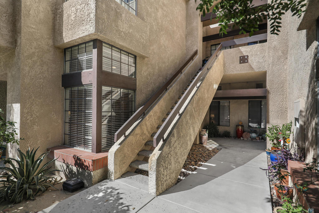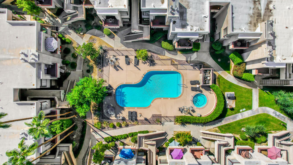 PRICED for Prompt Sale! Stylish remodel recently completed on this larger ground-floor, single-level condo in desirable SOUTH PALM SPRINGS — and it’s on FEE LAND! The open-concept design showcases oversized windows, high ceilings, and a dramatic floor-to-ceiling tiled fireplace in the great room, creating a bright, welcoming atmosphere. The fully remodeled kitchen is both functional and striking, with quartz countertops, custom cabinetry, counter-height breakfast bar, single stainless sink, and brand-new 2025 dishwasher and gas range. Both bathrooms are thoughtfully updated with quartz counters, new cabinets, a tiled tub/shower combo, and a step-in tiled shower in the primary suite. Extra linen cabinetry adds storage convenience. The primary suite offers double closets (including one walk-in) plus direct patio access — an inviting space to enjoy morning coffee or evening relaxation. The versatile den can easily serve as a third bedroom, office, or hobby space depending on your needs. Additional features include luxury vinyl plank flooring throughout, ceiling fans in every bedroom, full-size laundry, and a new HVAC system (2022), helping keep utility costs comfortably low. Mountain views can be enjoyed from both the primary and guest rooms, enhancing the appeal of daily living. Located adjacent to one of the pools, this home makes enjoying the community’s amenities effortless. Summerset Springs is a beautifully maintained gated community offering two pools, two spas, BBQ areas, lush lawns, and mature landscaping. Residents also enjoy covered assigned parking plus plenty of guest spaces, all with LOW HOA dues. This prime South Palm Springs location is directly across from Rimrock Plaza (Vons Center), and just minutes from golf courses, shopping, dining, entertainment, and outdoor activities. Palm Springs International Airport is approximately 3 miles away, making travel exceptionally convenient. HOA guidelines permit rentals of 30 days or longer, supporting both full-time residents and seasonal living. Truly a stylish, move-in-ready property that blends modern upgrades with an ideal Palm Springs lifestyle. See attached list of recent upgrades and special features.