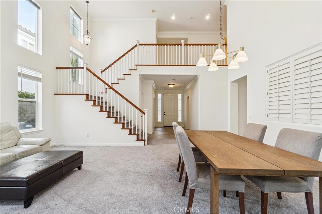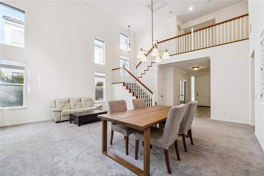 Stevenson Ranch is the setting for this move-in ready 5-bedroom pool home! One of the more popular floorplans with soaring ceilings upon entry, a private bed/full bath down plus an office. 4 more bedrooms upstairs with 3 more full baths offering a true open concept with a livable, functional floorplan. Granite counters in the kitchen, whole house attic fan, crown molding, shutters and blinds. Private yard with pool & spa and a cul-de-sac location. Brand new paint and newer carpet, all in neutral colors. Close to Richard Rioux Park and award-winning Stevenson Ranch Elementary (2023 CA Distinguished School Award). No Mello Roos, a low HOA & a lot of home for the money in one of the most prestigious neighborhoods in town!