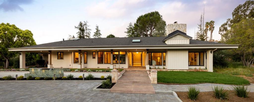 This architectural residence has been meticulously reimagined w/ a high-end renovation. Showcasing a refined material palette of limestone, antique whitewashed brick, board-and-batten siding, the home blends classic character w/ contemporary sophistication. Its distinctive horseshoe configuration captures sweeping valley & Santa Cruz Mountain views, creating a rare sense of privacy & retreat. Inside light-filled interiors feature open, flowing spaces designed to seamlessly connect indoor & outdoor living. A linear layout enhances sightlines & draws the eye to the surrounding landscape, while expansive windows frame picturesque vistas throughout. One wing is dedicated to inviting gathering spaces ideal for entertaining, while the opposite wing offers serene en-suite retreats designed for comfort & seclusion. Gracefully set into the hillside, Doris Villa embodies a balance of grounded elegance & airy openness-an extraordinary offering for those who appreciate thoughtful design, natural beauty & refined living. End of a lane atop a knoll w/ mature trees. Outdoor grounds w/ waterfall fountains, cabana & fully enclosed entertaining spaces. Bonus junior ADU w/ a bath adds versatile living options & privacy. Quiet interior spaces & a peaceful backyard setting, best appreciated in person