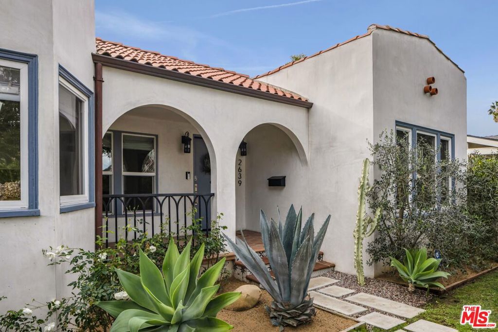 Full of charm and beautifully updated, this Spanish-style home blends classic character with just the right modern touches. Set on a lovely, tree-lined street, the hedged front yard and Saltillo-tiled porch make a warm first impression before you even step inside. Gorgeous wood floors flow seamlessly throughout an easy, open layout that feels both spacious and inviting. The kitchen has been thoughtfully remodeled with white oak cabinetry, honed quartz counters, a farmhouse sink, and a statement range with hood and pot filler, opening naturally to a sunny dining area with bay windows. The living room keeps its timeless Spanish charm with a beautiful barrel ceiling, chic olive-painted fireplace, and large picture windows that fill the space with light. The main house offers three bedrooms and three bathrooms, including a peaceful primary suite with French doors to the yard, a custom walk-in closet, and a spa-like bath with dual vanities, a soaking tub, and an oversized skylit shower. Outside, the private backyard is perfect for relaxing or entertaining. Additionally, the detached, fully permitted 460-square-foot ADU includes its own kitchen, bedroom, and bath ideal for guests, a home office, or extra income. All just minutes from parks, top-rated Clover Avenue Elementary, Westfield Century City, the beach, and some of the Westside’s best shopping and dining, this centrally located home truly offers the best of Westside living. This is one not to miss!
