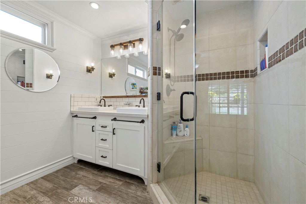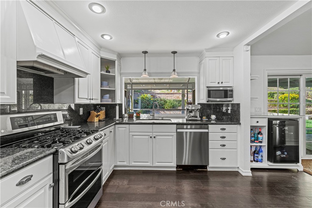Eye-catching and full of personality, this charming single-story home stands out with its vibrant sky blue exterior – a bold, cheerful statement that sets the tone before you even step inside. Located in the heart of Valencia, this 1,747 sq. ft. home offers 4 bedrooms and 2 bathrooms, along with thoughtful updates and major system improvements for added peace of mind. Plus… there is no Mello Roos or HOA!! Inside, you’ll find wood flooring and an open layout that creates a comfortable flow between the kitchen and family room. Dual-pane windows and a whole-house fan enhance energy efficiency and everyday comfort. The kitchen offers white cabinetry, granite countertops, stainless steel appliances, recessed lighting, and added built-ins in the office area for extra storage and functionality. It opens directly to the living spaces, making it practical for daily living and gatherings alike. The living room features a sliding glass door leading to the backyard, providing easy indoor-outdoor access. The yard includes a covered patio with lighting, a grassy area, hillside planters, and a storage shed – offering space to relax, garden, or entertain. The primary suite includes custom built-ins in the closet and a remodeled ensuite bathroom with a large shower, quartz countertops, and subway tile backsplash. Three additional well-sized bedrooms share a remodeled hall bathroom. Significant upgrades completed by the current owners include a full HVAC system replacement, water heater replacement, electrical panel replacement, custom built-ins in the kitchen and primary closet, and a remodeled hall bath – providing valuable infrastructure improvements beyond the cosmetic updates. Conveniently located near shopping, dining, and schools, this distinctive Valencia home offers character, comfort, and important upgrades in a desirable setting!!