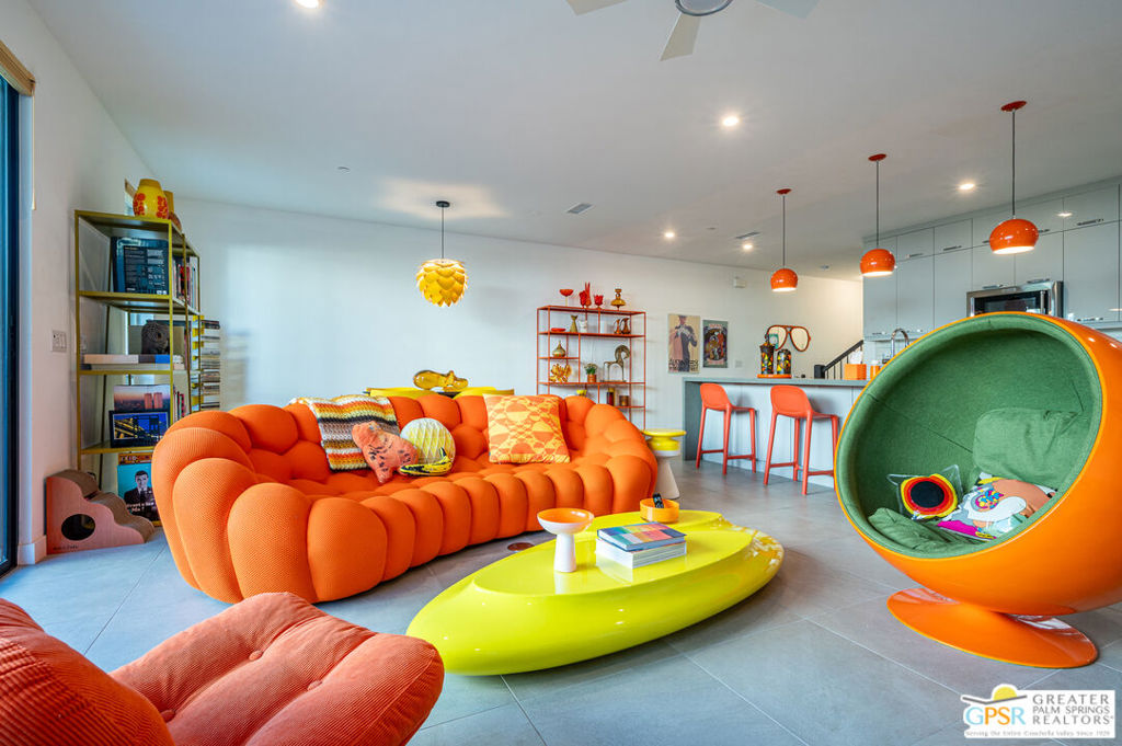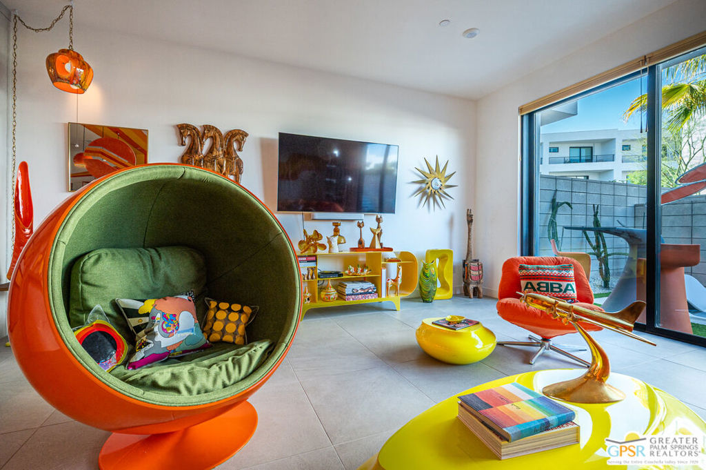 274 Mayfair is located within the Toll Brothers built, gated community of Cody Place. This 2237 square foot “Cameo Elite” plan home has a generous open kitchen with living and dining in one great space. The living room’s stacking 3 panel 8′ x 12′ sliding door opens to a saltwater private “spool” cocktail pool with a lounging shelf and jets and a fire feature, all in a private gated yard. The kitchen has upgraded cabinets featuring a second row of upper cabinets to the ceiling, and pull-out spice racks on either side of the Kitchen Aid gas range. The 12 ft by 4 ft island has a deep stainless sink and a Kitchen Aid stainless dishwasher. The Samsung Bespoke refrigerator has color panels that can be updated to match your decor but currently harmonize with the pendants and chandelier in the open concept living/dining space. On the second level, up a grand carpeted staircase, lies a bright sun-filled loft office/den space with a 12 ft ceiling and adjacent balcony. A guest bedroom is next to the loft with an adjacent full bathroom with a walk-in, tiled shower, and the laundry room with stacked LG washer and drier. Around the stairwell through a vestibule with storage cabinets, is the roomy primary bedroom with another bright and beautiful 8′ by 12′ 3 panel sliding door that flanks another balcony that looks down to the private pool and yard, but also has views to the clubhouse, outdoor community grill, and turquoise shared pools and large hot tub. Up the next flight of stairs with its clerestory windows creating a sunny atrium, a single lite door leads to the “elite” third floor outdoor entertaining room, covered to shield from the elements but open to the north with mountain and community views. This space invites indoor/outdoor living in the fall, winter and spring months, complete with its own ceiling fan. The space could be used for outdoor TV watching and has a hose bib for potentially cultivating lots of potted plants. The sky’s the limit! The townhome also features a two car garage with ample storage and a frosted glass garage door, and a powder room and additional storage tucked behind the kitchen. Cody Place sits conveniently on Palm Canyon Drive and is a short distance to downtown, and the bend district’s restaurants and shops. The new CV link biking and walking path lies just north of the community. Honey, stop the search! You’ve found 274 Mayfair!