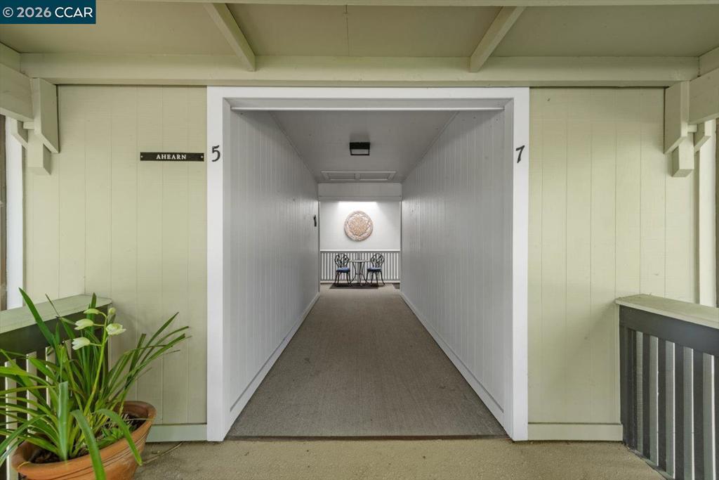 Welcome to 2741 Golden Rain Rd #7, a spacious upper-level Sequoia Wrap 2BD/2BA co-op offering approx. 1,466 sq ft in the sought-after 55+ Rossmoor community. The open living and dining area is filled with natural light and features a fireplace and built-in entertainment center. A covered balcony spans the home, providing a peaceful outlook and space for outdoor seating or dining. The updated kitchen includes modern appliances, ample cabinetry, and a large breakfast bar/island. A versatile bonus room offers flexibility for an office, reading, or exercise space. The primary suite features an expansive closet and ensuite bath with dual vanities, bidet, and walk-in shower with seating. The second bedroom includes a Murphy bed for added flexibility. Nearby is a bath with large vanity and walk-in shower. Additional features include dual-pane windows, skylights, generous storage, and a private parking space and cabinet ideal for golf clubs or seasonal items. There’s also a community gathering space nearby. Rossmoor offers golf, fitness, pools, tennis, trails, clubs, and more. Buyer must qualify. Monthly HOA dues. Minutes to downtown Walnut Creek, shopping, dining, and freeway access.