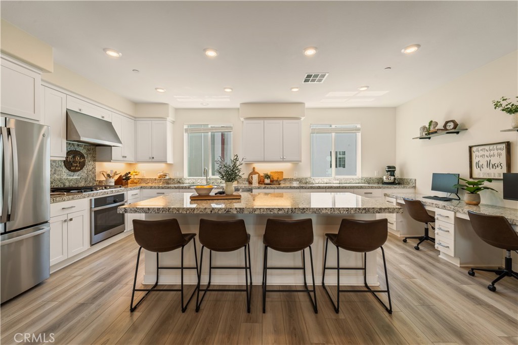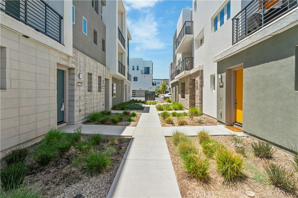 Experience elevated living in this stunning 3-bedroom, 4-bath townhome, ideally situated in the vibrant Five Points neighborhood’s coveted Tulip tract. This home, built with premium builder upgrades has soaring ceilings, contemporary finishes, and an abundance of oversized windows that bathe the interior in natural light. The main living area boasts elegant, light-toned wide plank flooring, while plush Berber carpeting adds comfort to the bedrooms. The heart of the home is the chef’s kitchen, featuring exquisite granite countertops, white shaker cabinetry, stainless steel appliances, and a generously sized island with ample bar seating, seamlessly connecting to the spacious living room with an oversized balcony, perfect for outdoor relaxation. Each bedroom offers a private en-suite bath and ample closet space, plus a convenient main-level powder room. The luxurious primary suite includes a large walk-in closet, a spacious en-suite bath with a walk-in shower and dual vanity, and a second oversized balcony. An upper-level laundry room adds to the home’s convenience. A versatile lower-level bedroom with its own bath is perfect for a home office or guest suite. This smart home features solar panels, a tankless water heater, instant hot water, a smart water valve with leak detection, a smart stove, and an attached 2-car garage. The community HOA provides access to multiple pools with kiddie pool, spa, recreation center, community garden, and several parks. Enjoy proximity to award-winning schools, shopping, Magic Mountain, and easy freeway access.