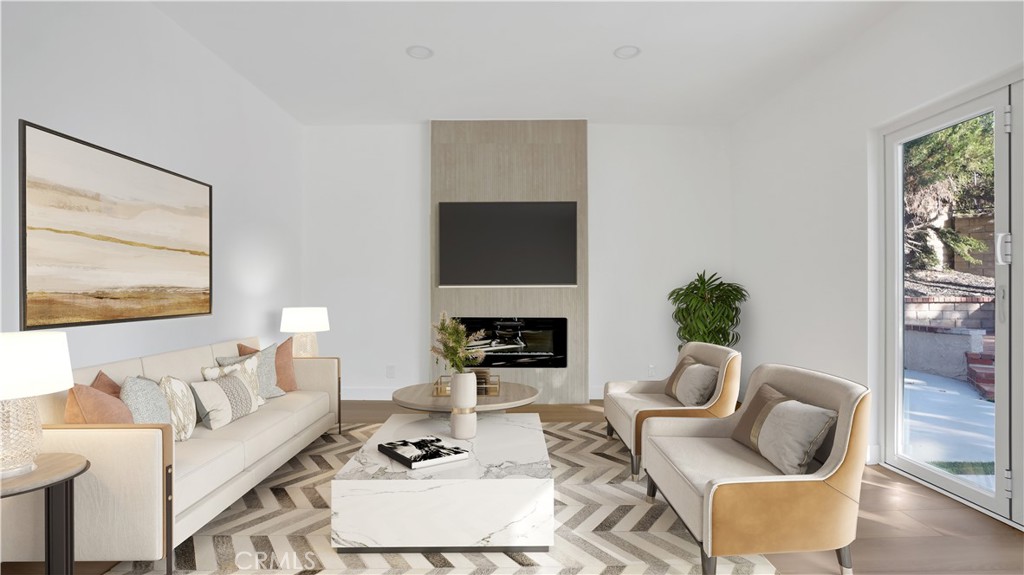Beautifully updated home in the desirable Madrid Del Lago community of Mission Viejo. This light-filled residence features soaring ceilings, an open layout, and a modern kitchen with quartz countertops and newer appliances. The spacious family room with fireplace opens to the backyard through large bi-fold doors, creating great indoor-outdoor flow. The home offers 4 bedrooms and 3 full baths, including a main-level bedroom and bath. The primary suite includes vaulted ceilings, a walk-in closet, and a remodeled bath with dual sinks and a walk-in shower. Recent upgrades include newer windows, flooring, plumbing, and HVAC. Enjoy comfortable living in a sought-after neighborhood close to the lake, parks, and amenities.