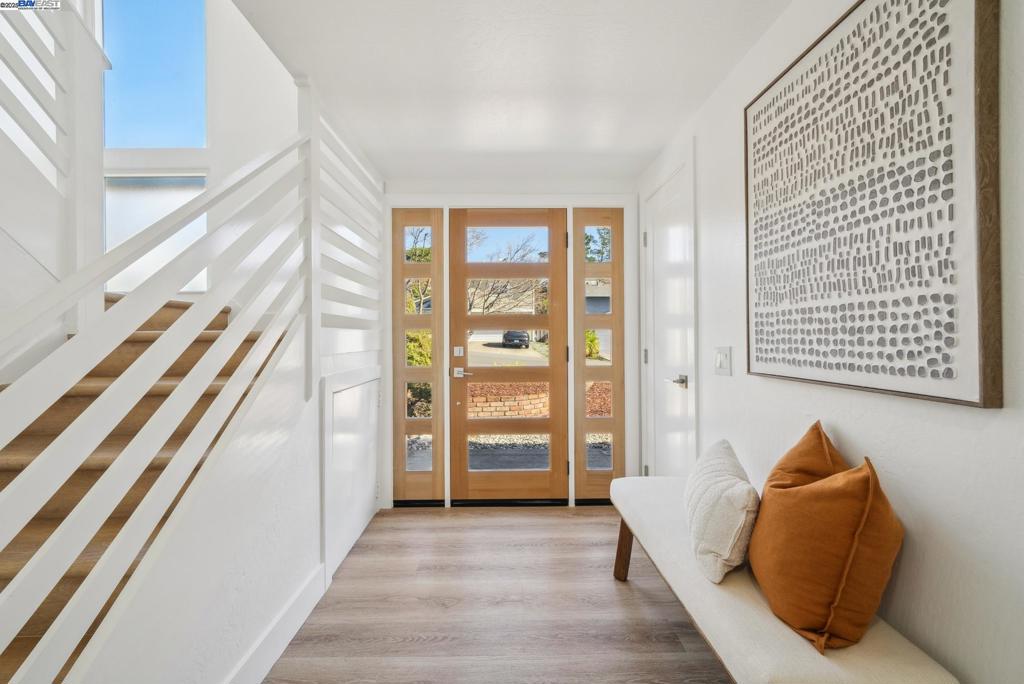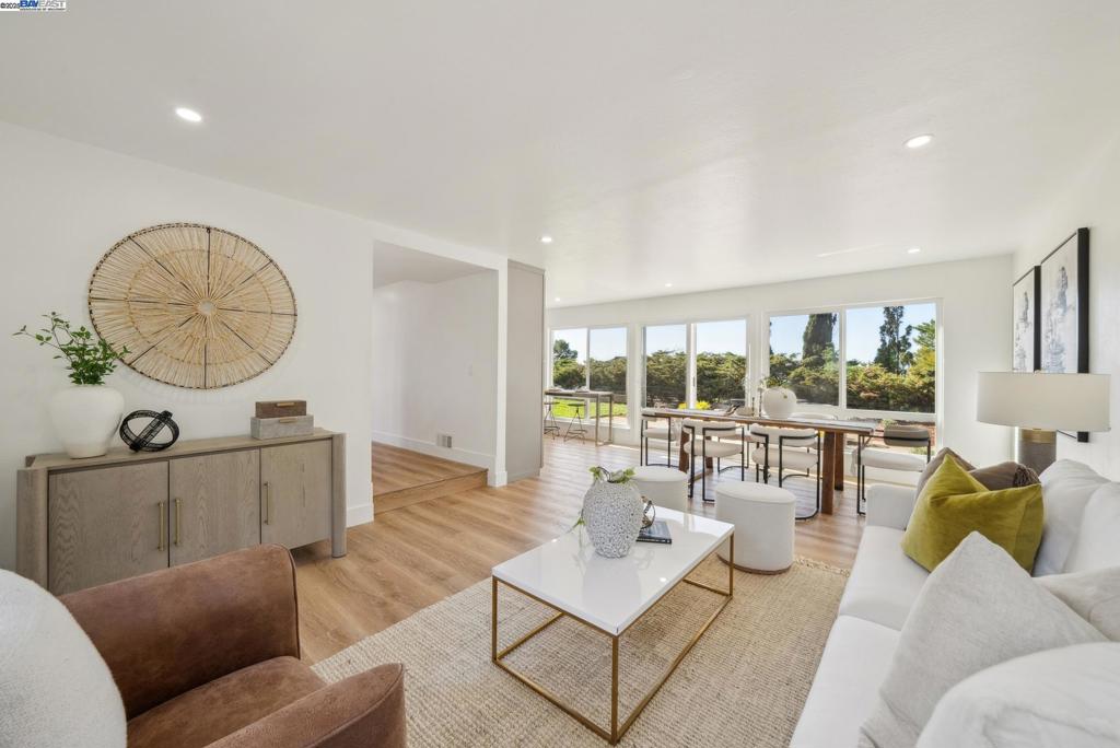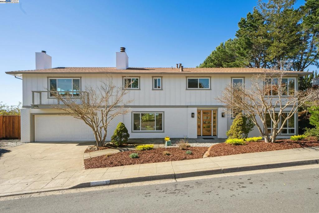 Discover this stunning corner-lot residence in Hayward’s sought-after neighborhood, offering 4 bedrooms, 2.5 baths, and 2,584 square feet of living space. Designed to impress, this newly renovated home showcases a panoramic view of the Bay, perfect for enjoying breathtaking sunsets. Step inside to a modern kitchen featuring Samsung Bespoke stainless steel appliances, a sleek glass tile backsplash, quartz countertops, and an open-concept living and dining room with sliding door access to the backyard. The spacious family room is highlighted by an electric fireplace and a convenient half bath on the main floor. Upstairs, retreat to the primary suite, bathed in natural light, complete with a sitting area overlooking the Bay. The primary bath is a serene oasis with a walk-in shower and a standalone soaking tub. The second floor also offers three additional bedrooms (one staged as an office), a full bath, and a massive family room with its own electric fireplace and deck showcasing spectacular Bay views. Outdoors, you’ll find a flat, private yard with newly installed lawns, perfect for hosting gatherings or relaxing with family. This home is an entertainer’s dream, blending comfort, style, and unforgettable views.