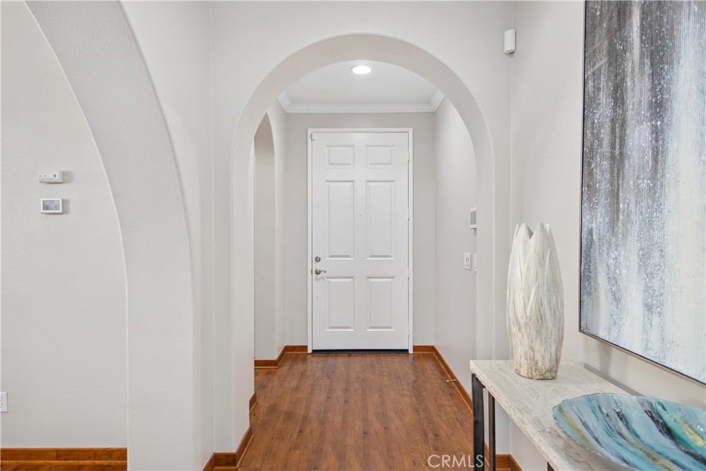 Welcome Home! This stunning single-story home is located on a cul-de-sac in Parklane, an exclusive all-single-story neighborhood within Heritage Lake in Menifee. Beautifully upgraded and meticulously maintained, this immaculate property is move-in ready. Boasting an open floor plan, the home features 4 bedrooms, 3.5 bathrooms, an office, and a spacious kitchen with a massive island, a cozy breakfast nook, Quartz countertops, cabinet pull-outs, and elegant tile flooring. Unique design touches abound, including soaring 9-foot ceilings, crown molding, a private atrium courtyard, and beautifully crafted interior archways. The entire interior has been recently painted, giving the home a fresh, modern feel. The luxurious master suite is situated in its own private wing and offers a completely renovated master bathroom with a large soaking tub, dual sinks, a vanity, a walk-in shower, and a generously sized walk-in closet. The heart of the home is the expansive great room, which includes an oversized family room with a welcoming fireplace. Additionally, there are formal dining and living rooms that can easily double as a game room, all bathed in natural light from large double-pane windows. Step outside to the impeccably landscaped backyard, which features a serene waterfall fountain, lush fruit trees, and low-maintenance artificial turf in both the front and back yards. The home also includes an indoor laundry room and a spacious 3-car garage with sleek epoxy flooring, adding style and functionality. Heritage Lake amenities elevate the lifestyle with a clubhouse, a serene waterfront Jr. Olympic-sized pool, and a fun-filled splash park. This home is an exceptional opportunity to live in one of Menifee’s most desirable neighborhoods!