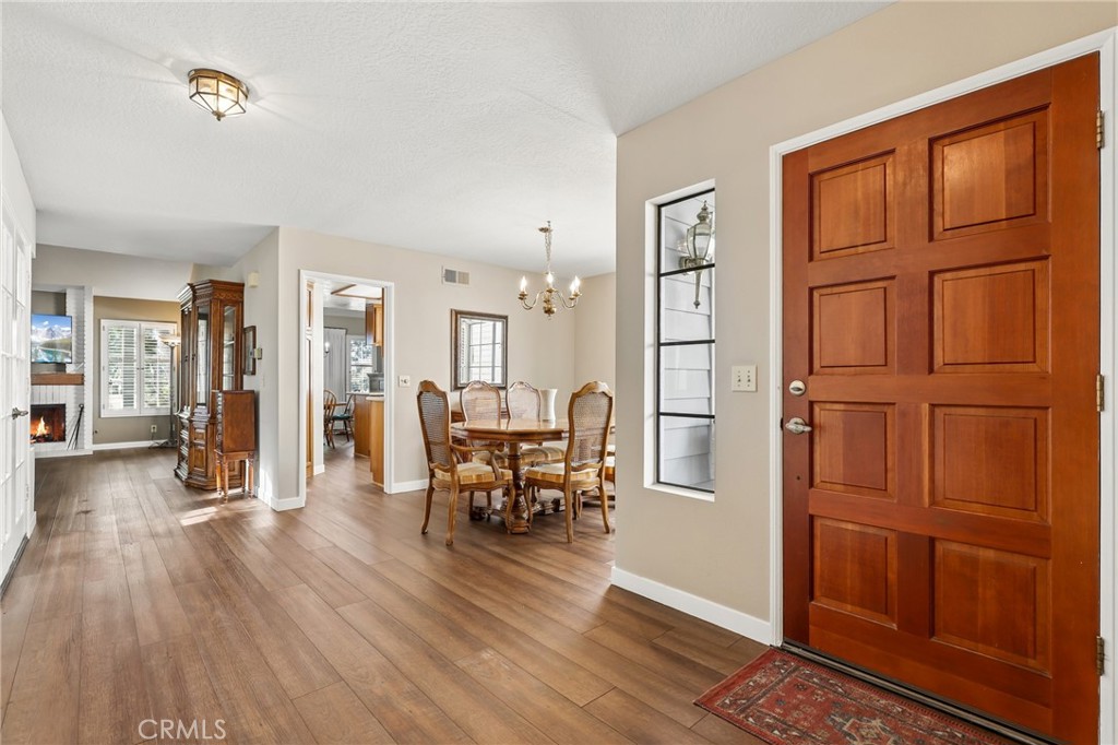 Lovely end-unit, corner location home offering 1,439 square feet in the highly sought-after Casta Del Sol 55+ community. This well-maintained residence showcases true pride of ownership throughout. A charming brick patio and welcoming blue front door create an inviting entry. Step inside to a spacious living area featuring a cozy fireplace, perfect for relaxing or entertaining. The open layout seamlessly connects the living room, dining area, and kitchen, in addition to a separate formal dining room for more traditional gatherings. The primary suite is a true retreat, complete with an en-suite bathroom and sliding glass doors that lead to a wraparound patio with scenic views. The additional bedroom is generously sized. Highlights include a west-facing back patio ideal for enjoying sunset views, newer vinyl flooring, a two-car attached garage, and a welcoming veranda off the entry. Residents of Casta Del Sol enjoy resort-style amenities—don’t miss the opportunity to make this exceptional home yours!