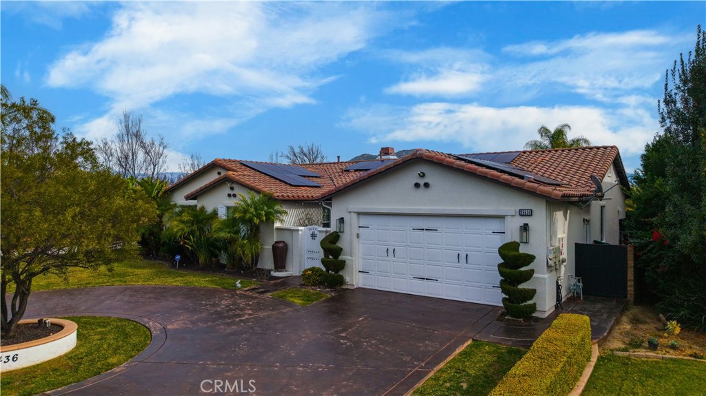 Mediterranean Single-Level Estate with Resort-Style Grounds on a 14,261 Sq Ft Lot Experience luxury living at its finest in this breathtaking single-level Mediterranean estate, introduced by a grand circular driveway and an inviting courtyard centered around a serene fountain with an island-inspired design. From the moment you enter, soaring ceilings and an open floor plan set the tone for sophistication and comfort. The gourmet kitchen is a true showpiece—appointed with wood-grain ceramic tile flooring, rich dark wood cabinetry, a striking glass backsplash, granite countertops, and an exquisite copper ceiling paired with a matching copper range hood. A built-in wine rack and a commanding center island elevate both style and functionality, while top-tier appliances complete this chef’s dream space. The adjoining family room offers an ideal setting for relaxation and entertainment, featuring surround sound, custom built-ins flanking the fireplace, a coffered ceiling, recessed lighting, and elegant crown molding. With 4 spacious bedrooms—including one currently used as a den/office—and 3 beautifully designed baths, this home adapts effortlessly to any lifestyle. The master suite stands in a class of its own. This oversized retreat boasts open-beam high ceilings, a private door to the backyard, and complete separation from the spa-inspired master bath. Indulge in a custom walk-in shower, dual-sink vanity, dual medicine cabinets, a generous walk-in closet with built-ins and a bench, and a ceiling fan for added comfort. Step outside to your personal resort. An exterior door from the master leads directly to a luxurious spa area enhanced by a countertop with fire feature and bar seating, an alumi-wood patio cover, a tranquil wall fountain, and lush mature landscaping. The expansive backyard continues to impress with mirror-image fire pits, elegant statues, a stately fountain, three ceiling fans, a powerful mister system, and an additional oversized alumi-wood patio cover. The vast concrete patio accommodates multiple seating and dining areas, while the outdoor kitchen—complete with a large bar, extra seating, sink, refrigerator, and gas line for a BBQ—creates the perfect setting for unforgettable gatherings. A sweeping lawn adds the finishing touch to this entertainer’s paradise. This estate blends architectural beauty, thoughtful design, and resort-level amenities into one extraordinary offering