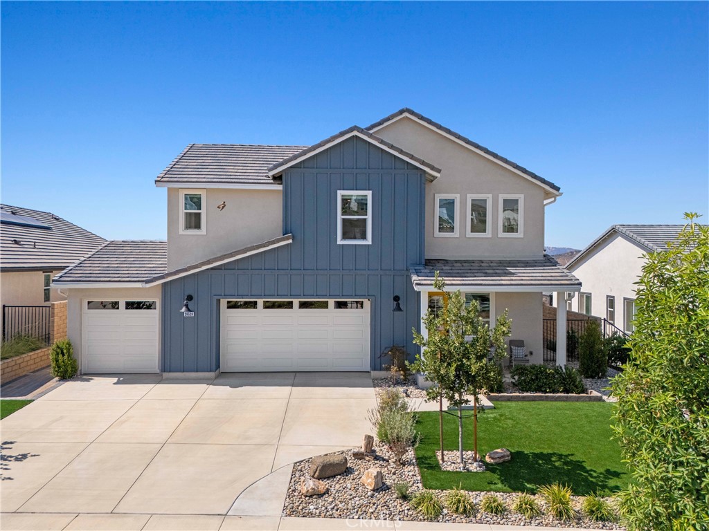 PRICE IMPROVEMENT! Beautifully upgraded two-story home is part of the sought-after Meadow Collection and offers nearly 180-degree panoramic VIEWS and over $120k of incredible upgrades throughout. The spacious layout features 3 bedrooms, a generous multi-purpose loft, 2.5 baths, and 3 car garage. The open-concept kitchen with beautiful cabinets and a gorgeous center island flows seamlessly into the family room, where triple sliding doors lead to a covered patio, perfect for entertaining. As you venture upstairs, the steel baluster staircase wraps around an elegant custom chandelier. The primary suite features a spa-inspired en suite bathroom with an oversized shower, dual sinks, a spacious walk-in closet, and a multi-slide door leading to a private balcony with stunning views. The custom landscaped front and back yards feature artificial turf, concrete tile, lush lawn, river rock, ambient lighting, a resistance swim pool, and a relaxing jacuzzi, all on an incredible lot ideal for celebrations or quiet evenings at home. Additional highlights include luxury vinyl plank flooring downstairs, an upstairs laundry room, custom lighting fixtures, automatic window shades, ceiling fans, a tankless water heater, and PAID solar. Set within a master-planned community surrounded by the Sierra Pelona Mountains, near shopping, restaurants, and freeways, Williams Ranch offers a unique blend of tranquility and convenience. Planned amenities include a junior Olympic-size pool, outdoor kitchen, scenic hiking trails, citrus orchards, vineyards, a wine pavilion, pocket parks, and a state-of-the-art recreation center. If you’re looking for a modern home with space, style, and stunning VIEWS in a vibrant community, this is the one. Come experience life at Williams Ranch, an exceptional gated community thoughtfully designed with lifestyle and leisure in mind!