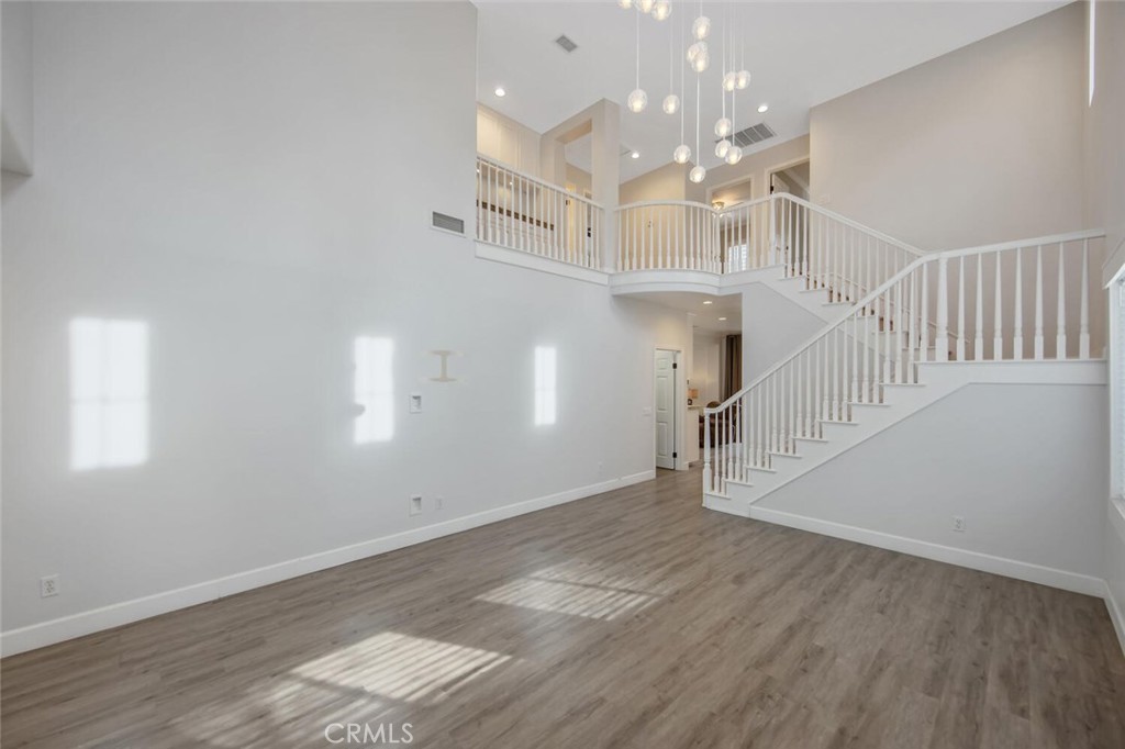 Beautifully upgraded home filled with natural light, featuring wood-style flooring and vaulted ceilings. The open-concept family room showcases a stacked-stone fireplace and flows into a modern kitchen with granite countertops, white cabinetry, stainless steel appliances, and a spacious center island. A versatile downstairs office or bedroom includes custom built-ins and is complemented by a full bath. The generously sized primary suite offers a walk-in closet and private bath. You will also find 3 additional bedrooms – one with custom closets and cabinetry. Enjoy a private backyard with no rear neighbors, along with added conveniences such as a garage workbench and security camera wiring. Conveniently located next to HOA parks and pools!