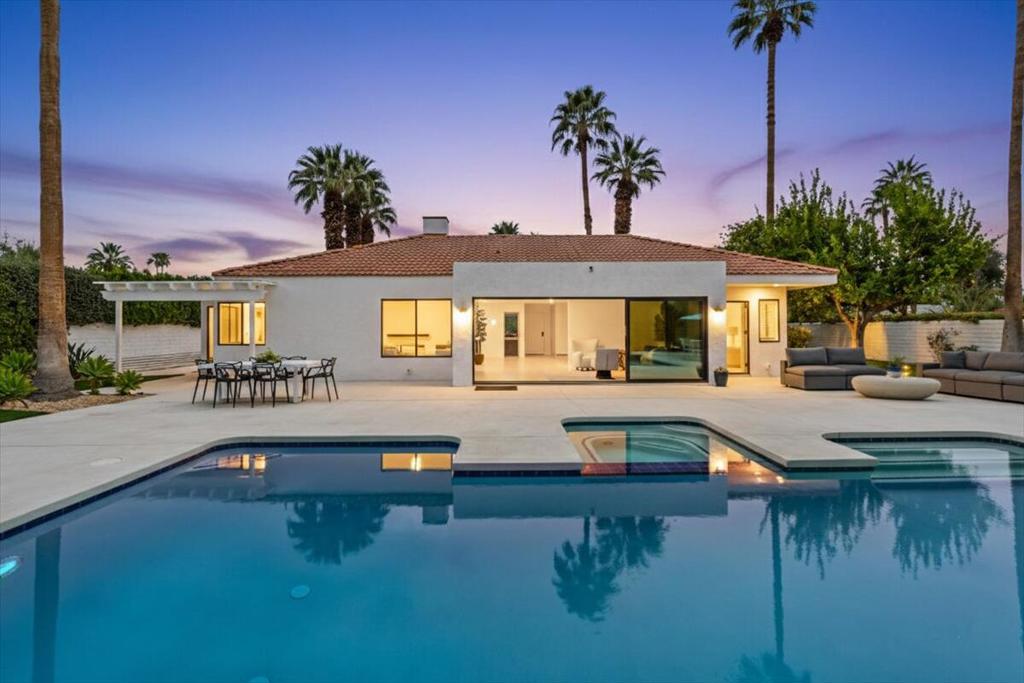 Introducing The Alondra House — a refined expression of elevated desert living in the heart of Palm Springs.Privately situated on an expansive corner parcel within an intimate South Palm Springs cul-de-sac, this exceptional residence captures uninterrupted panoramic views of the iconic San Jacinto Mountains from nearly every vantage point. The setting is serene, sophisticated, and undeniably exclusive.Spanning approximately 2,226 square feet, this impeccably curated three-bedroom, two-and-a-half-bath estate blends architectural warmth with modern refinement. A dramatic double-sided fireplace anchors the open-concept living and dining spaces, creating a seamless flow designed for both intimate evenings and elevated entertaining. The reimagined chef’s kitchen is bathed in natural light, offering clean lines, premium finishes, and effortless indoor-outdoor connectivity.Outdoors, the estate transforms into a private resort experience. A newly constructed pool and spa shimmer beneath desert skies, complemented by a bespoke fire feature lounge and multiple alfresco entertaining areas — all framed by breathtaking mountain vistas. A professional-grade five-hole putting green adds a playful touch of luxury, while the expansive three-car garage ensures both discretion and convenience.At The Alondra House, every detail reflects the essence of luxury Palm Springs living — privacy, architectural elegance, and a seamless connection to the surrounding natural beauty. This is more than a residence; it is a lifestyle defined by tranquility, sophistication, and timeless desert glamour.