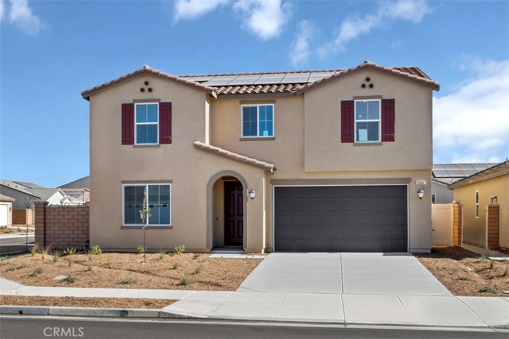 Homesite 11. This spacious, two-story home is new construction from one of Americas highest rated builders. Great location with nearby Diamond Valley Lake, 215 Freeway and convenient shopping at Menifee Towne Center. Plenty of room for everyone with five bedrooms and a loft. Upgraded cabinets and quartz kitchen countertops along with Whirlpool stainless steel appliances make for a luxurious kitchen. Luxury vinyl plank flooring in all the traffic areas with upgraded carpet in the remainder. Buyer can either lease or purchase the Solar. Photo is a rendering of the model. Photo is a rendering of the model. Buyer can either lease or purchase the solar.