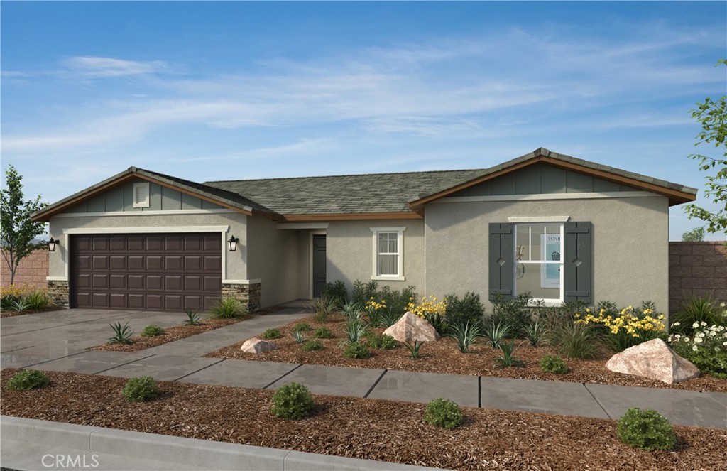 Single story community located right off of Domenigoni Parkway, quick access to the shops in Menifee. The home features white cabinets with quartscountertops, and the option for a 3rd car garage. Come and build your dream home in a beautiful neighborhood. 5 acre park walking distance. Home has 3-4 bedrooms, 2 bathrooms and a beautiful open concept. Photo is rendering of the model. Buyer can either lease or purchase the solar.