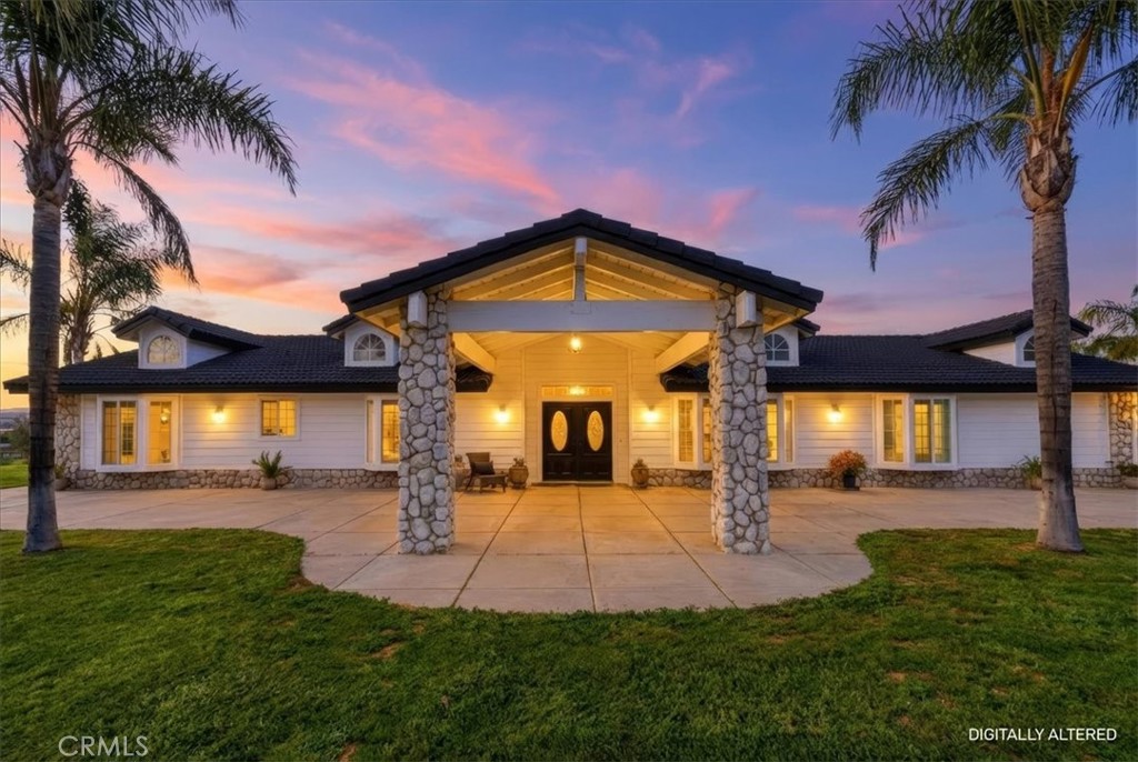 HUGE WAREHOUSE 7,200 SQFT ON 10 ACRES of land with a GORGEOUS CUSTOM BUILT HOME that has amazing views. RARE opportunity to own this property that has so much to offer. LIVE AND WORK OR PERFECT FOR HOBBYIST.  It is gorgeous with an expansive open floor plan and perfect for a large family. Beautiful BRAND NEW TILE ROOF, BRAND NEW TILE WOOD-LIKE FLOORS and BRAND NEW INTERIOR AND EXTERIOR PAINT. 4 spacious bedrooms and 3.5 bathrooms allows for plenty of space and separation. The ENORMOUS kitchen features brand new stainless steel appliances such as double ovens, perfect for holiday cooking, a cooktop with a downdraft and new dishwasher.  The kitchen overlooks the large family room where your whole family can enjoy and you can entertain for large gatherings. Living room features a rock fireplace with a heaterlator Quadra-fire-insert blower that will warm the whole house up and surround sound.  One bedroom and full bathroom is on opposite side of the home, and the primary bedroom is oversized with a walk-in closet.  The WORKSHOP IS MASSIVE with 7200 sqft (60×120 feet) and 2 14 foot high roll-up doors that you can drive  SEMI TRUCK THRU! 2 additional 10 foot roll up doors as well.  The workshop has reinforced extra thick stamped concrete perfect for parking a SEMI truck or heavy equipment. It was constructed to be a 2 story building (please see permits or city).  This property is located in the County of Riverside and was rezoned recently for storage parking as well. Perfect way to make extra income. There are 5 entry ways to get on the property making a perfect space for separation if you run a business from the property.  It is also horse property and would make a great ranch. The workshop is also built to make the workshop an indoor barn. Possible future development adds even more flexibility for this property. There are endless possibilities and usages for the new buyer. Septic system was just pumped and serviced and the propane was just filled.