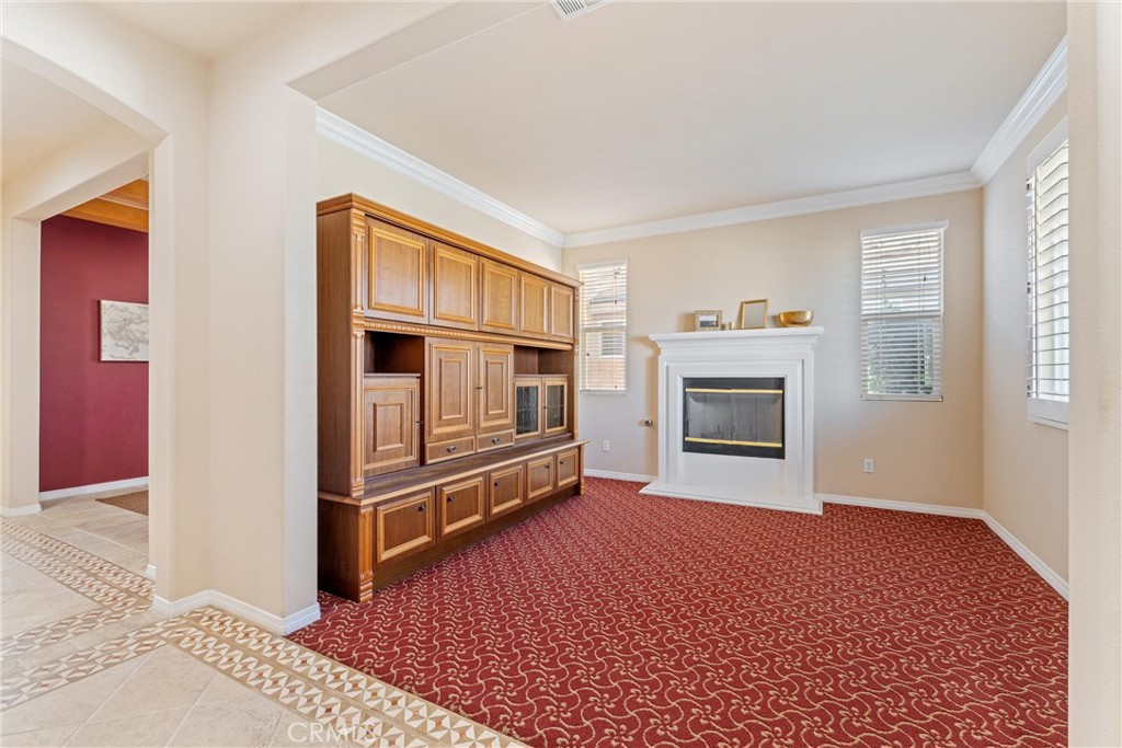 Experience luxury golf course living at its finest in Rancho Vista. This stunning former model home is perfectly situated in the prestigious Palmdale West community. This expansive single-story residence features three oversized bedrooms, three bathrooms, and a versatile bonus room that can easily be converted into a fourth or even a fifth bedroom. From the elegant travertine-tiled foyer to the designer wood ceilings in the formal dining room, every detail exudes sophistication. The home includes rich wood flooring and three separate fireplaces for unparalleled ambiance. The gourmet chef’s kitchen is equipped with a massive central island, a butler’s pantry, and double ovens. The primary suite serves as a true sanctuary, featuring its own fireplace, a retreat area with custom built-ins, and a spa-like bath with a soaking tub and walk-in shower. Key upgrades include a newer AC condenser, gutters, and custom aluminum exterior security shutters for golf ball protection. A three-car tandem garage provides ample space for vehicles or a workshop.
