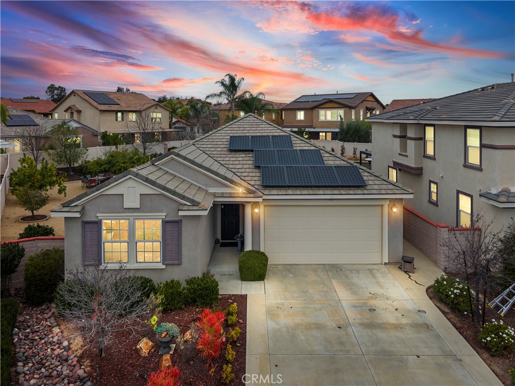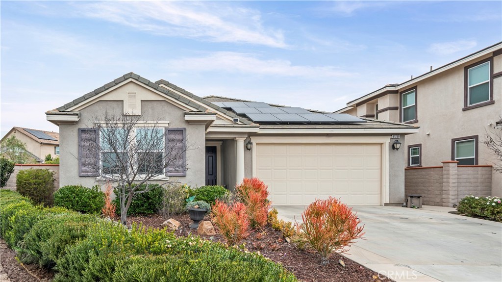 Price Adjustment! Single-story home on an expansive 10,000+ sq ft lot in the highly desirable Roripaugh Ranch community of Temecula, featuring solar to be paid off at close of escrow for added value and energy savings. Designed with an open-concept layout, the home offers high ceilings and abundant windows that fill the space with natural light. The gourmet kitchen is both stylish and functional, featuring stainless steel appliances, granite countertops, an oversized center island, white shaker cabinetry, and a walk-in pantry. It flows seamlessly into a spacious great room with a custom built-in entertainment center and a large dining area—ideal for everyday living and entertaining. A versatile bonus room provides flexibility for a formal dining area, home office, or potential additional bedroom. The expansive primary suite serves as a private retreat with dual walk-in closets, a soaking tub, and a separate shower. Two additional generously sized bedrooms are tucked away along a private hallway, along with a bright laundry room. Luxury vinyl plank flooring runs throughout, offering durability and low maintenance. Additional energy-efficient features include a tankless water heater, drip irrigation, and drought-tolerant landscaping. Residents of Roripaugh Ranch enjoy resort-style amenities including a clubhouse, pool and spa, 24-hour fitness center, tennis and basketball courts, parks, and scenic walking trails. Conveniently located near top-rated schools, shopping, dining, Temecula wineries, golf courses, and easy freeway access.
