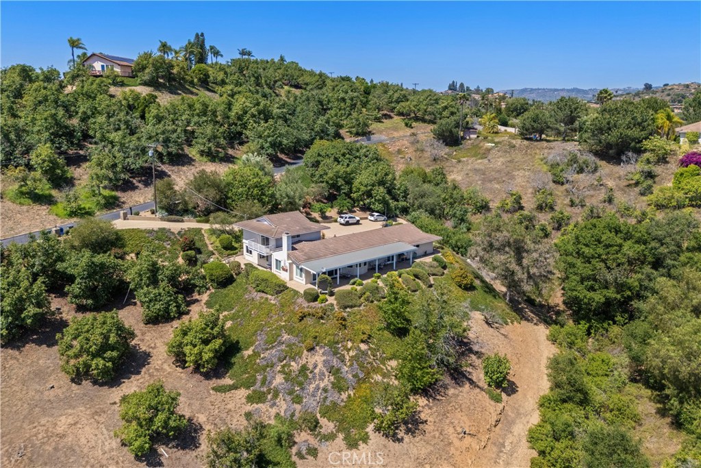 Welcome to this well-maintained 3-bedroom, 2.5-bath 2,624 sq ft home in the hills of Fallbrook. Located on a quiet private road, the 2.07 acre property offers panoramic views, a producing avocado grove, and convenient access to I-15, Temecula, and the coast. The landscaped grounds with a charming wrap around porch show pride of ownership and provide space for ATVs, gardening, or outdoor entertaining. Inside, vaulted wood-beam ceilings, a wood-burning fireplace, and dual-pane windows create a bright, open living space and formal dining room. The updated kitchen offers modern finishes, ample counter space, breakfast nook and a walk-in pantry. The 2 bedrooms downstairs double as an office or guest room. Upstairs you will find the private primary suite with an en-suite bath, custom built-in closets, and direct access to a Trex deck overlooking the groves. Additional features include a large two-car garage with built-in cabinetry, dedicated laundry room, and generous storage throughout. Property highlights: • 2.07 acres with a 75-tree producing avocado grove, irrigation set up for up to 150 trees • 20 minutes to Old Town Temecula, 30 minutes to the beach • Minutes to I-15 and 3 minutes to Monserate Winery • Usable land for recreation or entertaining • Updated concrete tile roof and HVAC • Space to add an ADU for rental or multigenerational living • Well-maintained septic system • New paver driveway Ideal for those seeking space, privacy, and income potential in a central Fallbrook location. Schedule a showing today!