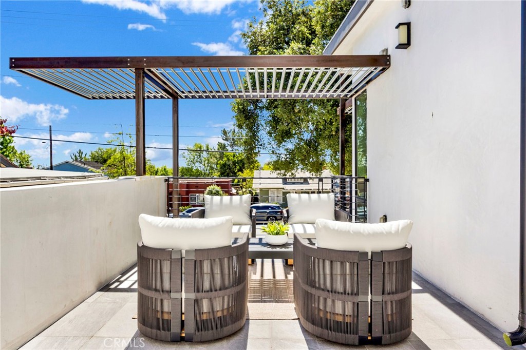 This brand-new contemporary residence is a masterclass in modern design, offering a seamless blend of architectural sophistication, thoughtful layout, and exceptional indoor-outdoor living, complemented by awesome city views. From the moment you arrive, a welcoming front patio near the entry sets the tone, creating a private and inviting space that introduces the home’s connection to the outdoors. Inside, clean lines, soaring ceilings, and expansive windows fill the interiors with natural light, while porcelain tile flooring and curated finishes elevate every space. The home is equipped with central air conditioning and mini-split systems for enhanced comfort and efficiency. At the heart of the home, the chef’s kitchen is a true showpiece, designed with both style and functionality in mind. It features sleek custom cabinetry, expansive quartz countertops, and a striking waterfall-edge island. A full suite of premium stainless steel appliances includes a professional-style range, built-in oven and microwave, and dishwasher, complemented by a 4-door flex French door refrigerator in a white glass finish. The kitchen flows seamlessly into the living and dining areas and offers direct access to a private balcony, enhancing indoor-outdoor living. The main level is further enhanced by three additional balconies—one off the kitchen and two on opposite sides of the living room—providing versatility, privacy, and abundant natural light throughout. The primary suite serves as a private retreat, complete with its own balcony, a spacious walk-in closet, and a spa-inspired ensuite bathroom. A secondary bedroom on the main level also features its own ensuite bath, along with a conveniently located hallway powder room. Upstairs, two additional bedrooms offer comfort and privacy, each with direct access to a shared balcony, with a full bathroom serving this level. Outdoor living is equally impressive, featuring multiple patios and decks, including a custom wraparound composite deck built around a mature tree. The landscaped yard includes mature greenery and a citrus tree. Additional highlights include an oversized two-car garage and a thoughtfully integrated laundry room just off the garage, offering generous space for added functionality and storage. Designed for modern luxury living, this exceptional home offers refined finishes, natural light, and seamless indoor-outdoor integration.
