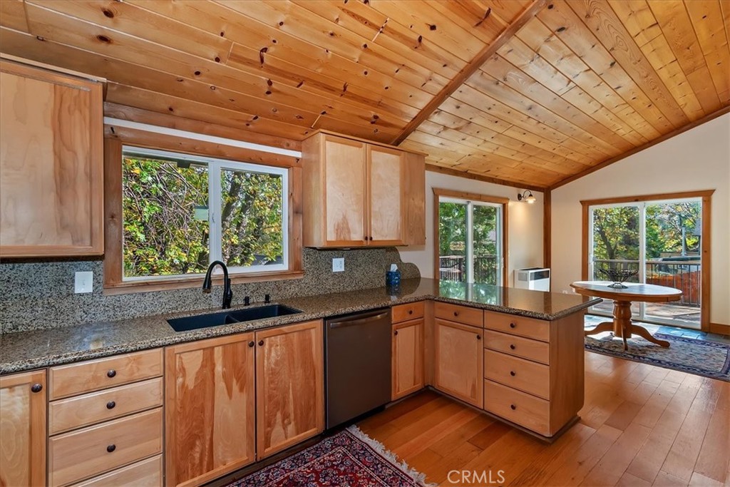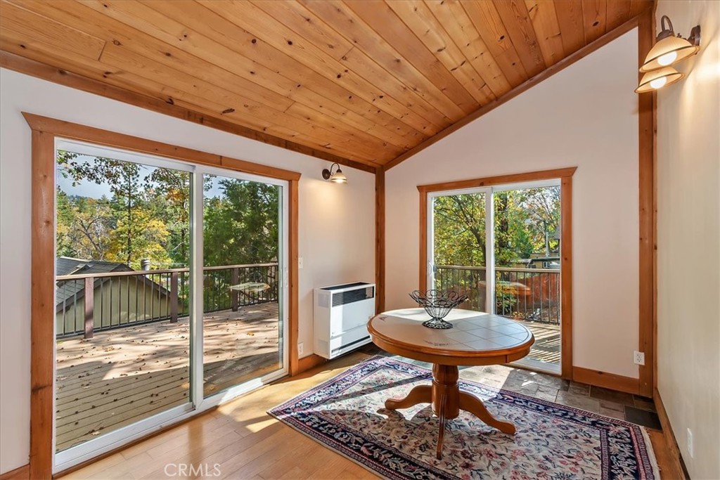 Charming Single-Level Mountain Home in Arrowbear – Cul-de-Sac Street with Trail Access! Centrally located Arrowbear, short distance to Snow Valley or ½ hour to Big Bear or down the hill to Highland / Redlands. This well-loved 3-bedroom, 1-bathroom home offers the perfect blend of comfort and convenience, with true single-level living with just three easy steps to the front door, level off-street parking (room for 3+ vehicles), one under carport. Inside, you’ll find a warm, inviting interior featuring wood ceilings, a cozy wood-burning stove, newer vinyl windows, and mini-split systems in every room for efficient heating and cooling. The updated kitchen boasts stainless steel appliances (dishwasher brand new) and induction range is brand new (faster and safer than gas), newer cabinetry, and granite countertops—ideal for home cooks and entertainers alike. Fresh paint throughout gives this home a crisp, move-in ready feel. Sustainable living comes easy with solar panels (owned), a Tesla charger, a 200 AMP electrical panel and fully insulated (unlike many other mountain homes). Step outside to enjoy low-maintenance Trex decking, beautiful spring blooms and fruit trees across three included lots, and direct access to nearby trails—perfect for hike, bike or nature walks right from your home. Bonus features include a spacious unfinished basement with windows, offering great potential for a workshop, or extra storage. Whether you’re looking for a full-time residence, a vacation getaway, or a rental opportunity, this home has everything you need in a peaceful, nature-filled setting. Come see the charm of mountain living with all the modern upgrades you want!