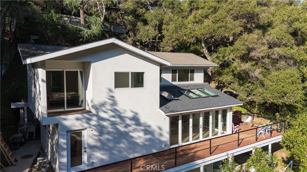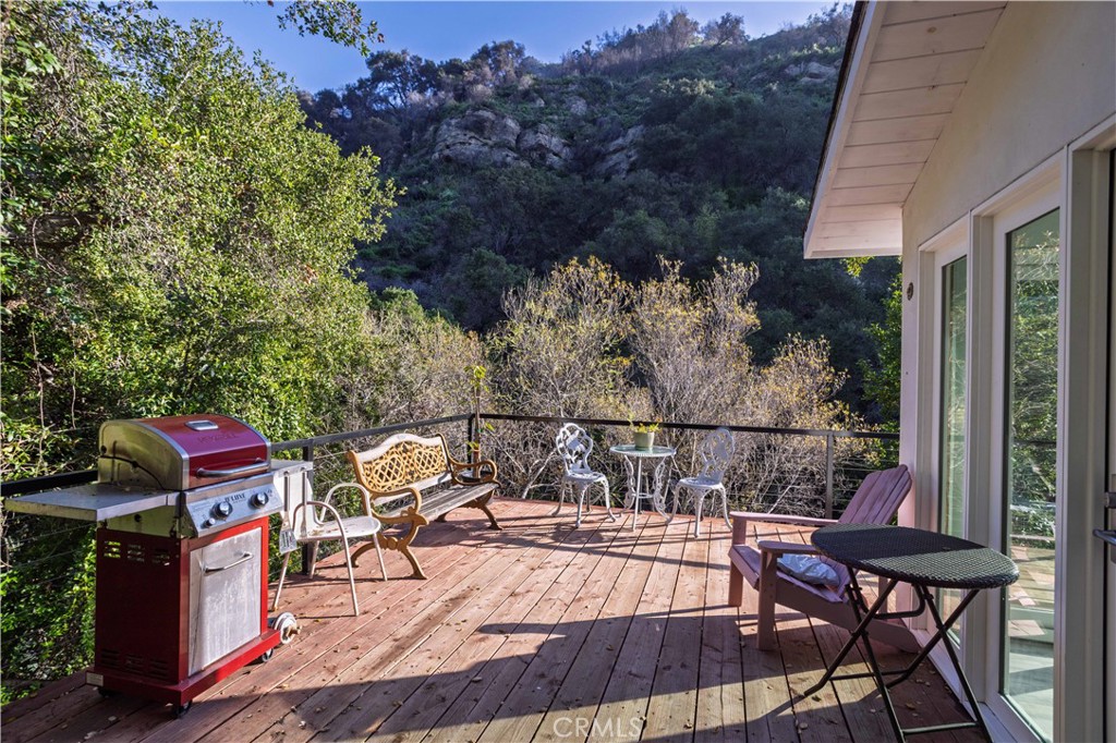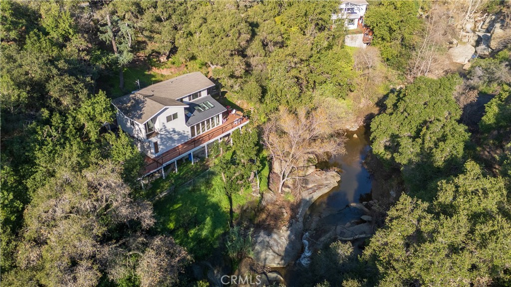 Privately set on approximately 2.45 acres across three parcels, this Topanga retreat offers exceptional seclusion while being just over 4 miles from Topanga Beach and moments from local shops, dining, and canyon amenities. Surrounded by mature oaks and natural landscape, the property enjoys peaceful canyon views and a flowing creek in the backyard, creating a truly tranquil setting. The home features light-filled interiors, an open living layout, vaulted ceilings with skylights, and flexible living spaces designed to connect with the outdoors. The property is currently configured with additional bedrooms and bathrooms without permits; buyer to independently verify square footage, room count, and all improvements. Outdoor highlights include a fully fenced yard and a strong sense of privacy. Additional features include a two-car garage and over 100 feet of street frontage offering ample parking. A rare opportunity to own a private canyon retreat with convenient access to both the coast and the Valley.