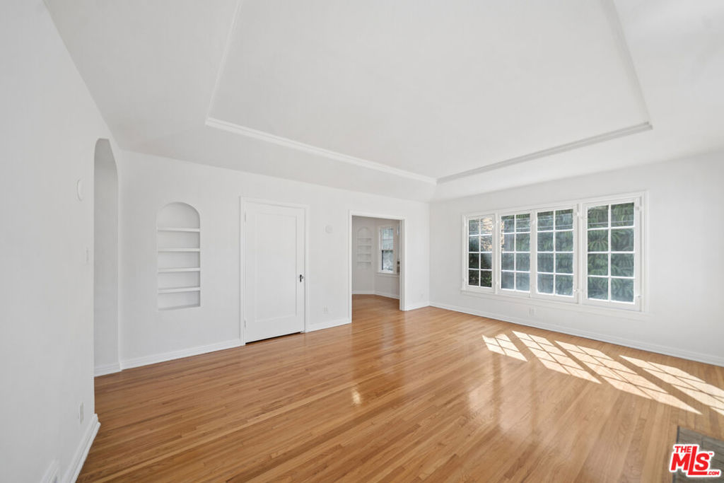 Beautiful oversized one bedroom in the desirable Hancock Park adjacent area featuring classic vintage character and abundant natural light. This bright unit includes hardwood floors throughout, a decorative fireplace, arched doorways, a separate dining area with built in shelving, and a spacious living room overlooking greenery. The bedroom offers multiple walk in closets and excellent storage. The kitchen provides generous cabinet space, and the charming tiled bathroom maintains original period details. On site laundry is available. Pets allowed with owner approval. Street parking only. Tenant pays electricity and gas. Conveniently located near The Grove, Melrose, Koreatown, Larchmont Village, and major shopping and dining destinations. Square footage is approximate and not verified.