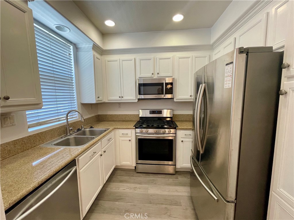 Updated two bedroom, two full bath townhome with small cozy loft in the highly desirable Terramor Village. West facing condo has been recently remodeled with new paint, vinyl plank flooring and baseboards throughout. Light and bright kitchen with white cabinetry, granite countertops, new stainless steel kitchen sink plus stainless steel appliances. Includes washer, dryer, refrigerator, and high speed internet. Sought after floorplan with an open living room with a fireplace, plus one bedroom up and one bedroom down. Large private upstairs master suite with a custom master closet organizer. En suite master bath area features an updated dual vanity with custom cabinetry and countertop, plus tub and separate shower. Custom built in cabinet storage throughout plus window blinds. This beautifully maintained home also features a private entry and porch area plus a two car tandem garage. In addition, a reserved parking spot in front of the townhome is included. Enjoy living near the popular Paseo Trail that meanders through Terramor. Walking distance to top rated elementary school, waterpark, dog park, skatepark, hiking/biking trails and community parks and pools. Small dogs ok.