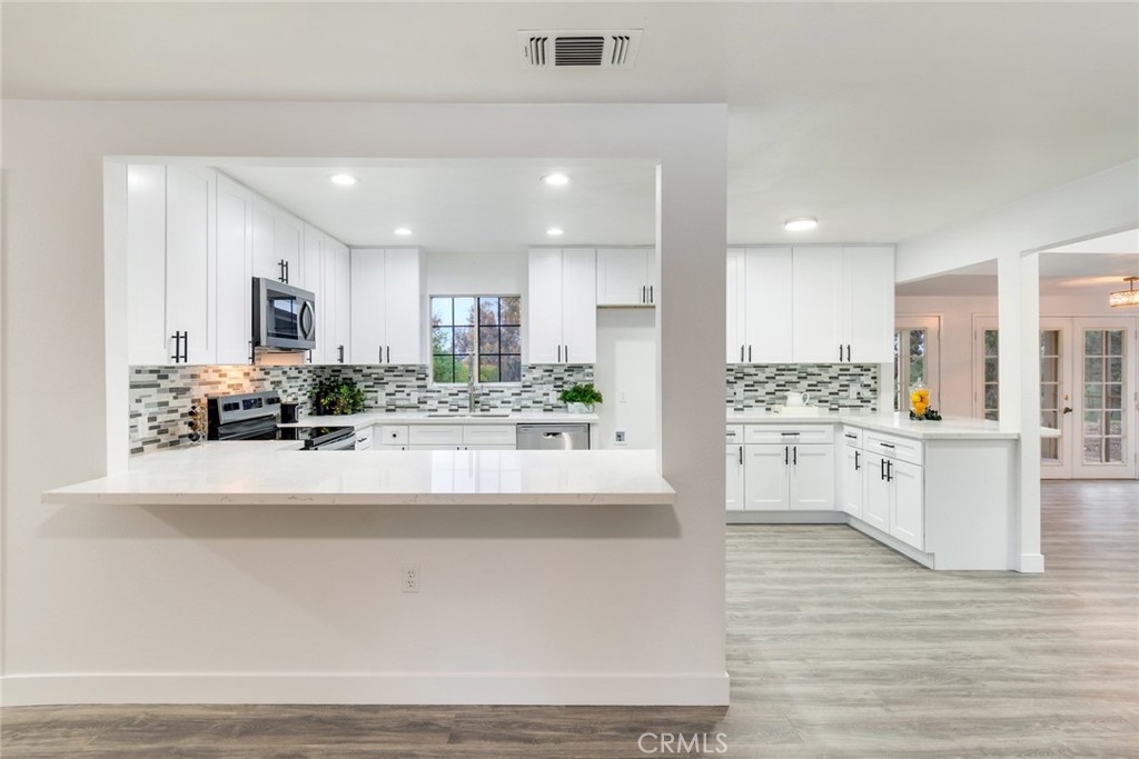 This gorgeous single-story home at 34100 Sugar Loaf Lane in Nuevo, California, sits on nearly 5 acres of usable land, making it an ideal horse property with plenty of space for equestrian activities and outdoor enjoyment. Welcomed through impressive large gates, the residence features three spacious bedrooms—each boasting mirrored closet doors and generous walk-in closets—along with three remodeled bathrooms that include a luxurious soaking bathtub. The upgraded kitchen shines with quartz countertops, a stylish farm sink, new stainless steel appliances, and modern touches like new light fixtures and recessed lighting throughout. Laminate flooring flows seamlessly through the main living areas, while plush carpet warms the bedrooms. Additional highlights include a brand-new roof, a convenient three-car garage, a huge bonus room/covered and enclosed patio featuring french doors perfect for relaxing or entertaining, and two large shipping containers that convey with the property. This stunning, move-in-ready gem, blending comfort, functionality, and rural charm, truly offers everything for comfortable country living and won’t stay off the market for long in the eyes of discerning buyers.