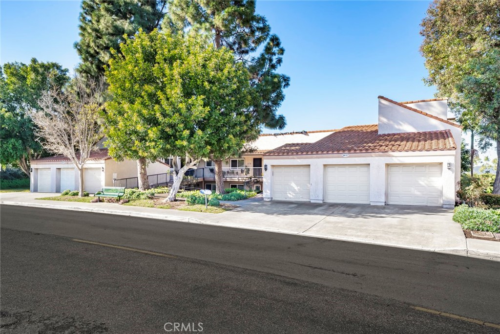 Welcome to 3417 P Punta Alta, Laguna Woods, California, a beautifully upgraded Catalina model featuring two bedrooms, two bathrooms, approximately 1,188 square feet, and sweeping views of the surrounding mountains and Laguna Woods Village. A custom leaded-glass front door opens to a light-filled home, where travertine-style tile flows through the kitchen, hallway, and guest bath. The chef’s kitchen is a standout, featuring a large custom island with abundant storage and electrical outlets, perfect for everyday use or entertaining. Cherry wood shaker cabinetry, granite countertops, and a full suite of stainless steel GE appliances, including a convection oven, microwave, dishwasher, and refrigerator with exterior ice and water, complete the space. Pendant and LED lighting provide excellent task and ambient illumination. The adjacent dining area enjoys mountain views through a large window, creating a warm and inviting setting. The spacious living room features crown and base molding, a travertine-clad fireplace with a wood mantel, and is pre-wired for surround sound with the system included. Dual-pane sliding glass doors and a large picture window open to an enclosed balcony with custom windows, providing flexible indoor-outdoor living and sun shades for comfort. The guest bedroom includes smooth ceilings, a lighted ceiling fan, plantation shutters, ample closet space, and carpeting. The guest bath offers a deep soaking tub with travertine surround, SolaTube natural lighting, custom cabinetry with granite counters, and a wand-style showerhead. The primary suite features crown and base molding, plantation shutters, a multi-feature ceiling fan, and generous closet space. The dressing area and bath continue the travertine flooring and include dual wardrobe closets, a tall linen cabinet, and a step-in shower with a low threshold, support bars, a shampoo niche, a window, and SolaTube lighting. A GE washer and dryer have been thoughtfully relocated into the primary bath on a custom pedestal for convenience. One Car Detached Garage with remote. Residents of Laguna Woods Village enjoy an unmatched resort-style lifestyle with 27-hole championship golf courses, 9-hole executive golf, tennis and pickleball courts, multiple swimming pools and fitness centers, lawn bowling, equestrian facilities, over 250 clubs, performing arts, dining options, free bus transportation, and 24-hour gated security.