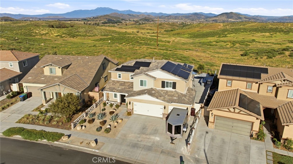 Welcome to your private retreat—where luxury, comfort, and functionality come together in one exceptional home. Perfectly situated on a premium lot backing to a scenic nature preserve, this property offers rare privacy and breathtaking, unobstructed views with no rear neighbors and no HOA. Step into your own resort-style backyard featuring a custom-built saltwater pool and spa, complete with Pebble Tec finish, heated system, Baja shelf, 8.5-foot depth, and an impressive 33,000-gallon capacity. Enjoy multiple water features including a spillover jacuzzi and tranquil waterfalls, all powered by Pentair smart equipment with full mobile control. Designed for entertaining, the outdoor space boasts stamped concrete, drought tolerant landscaping, a covered patio with integrated lighting and fans, a gas fire pit, and a stunning stone BBQ island equipped with a refrigerator, sink, and premium Bull gas grill. Inside, the home is equally impressive with 9-foot ceilings, durable and stylish wood-look plank tile flooring, plantation shutters, and a spacious loft—perfect for a second living area, office, or playroom. A standout feature is the oversized L-shaped walk-in closet—offering the kind of space rarely found, perfect for a full wardrobe, seasonal storage, or a custom dressing retreat. If you’re looking for upgrades…this is the one. Every inch of this home reflects quality, with countless upgrades beyond what can be listed here. The home has been meticulously maintained and is truly move-in ready. Additional highlights include: • Fully owned solar (25 panels) currently no electric bills • Income-producing JADU generating $1,650/month • 3-car garage • Expanded driveway with RV parking This home isn’t just gorgeous, it’s practical too! Ideally located with easy access to the 215 freeway, this home offers both convenience and connectivity. Enjoy being just minutes from everyday essentials and major retailers including a brand-new Costco Wholesale, The Home Depot, Target, Ross, food take out, and ALDI. Nearby hospitals and medical facilities add an extra layer of convenience and peace of mind. This is more than just a home—it’s a lifestyle. Opportunities like this, with privacy, income potential, upgrades, convenience and resort-quality amenities, are rare. This one has it all- come experience everything it has to offer.